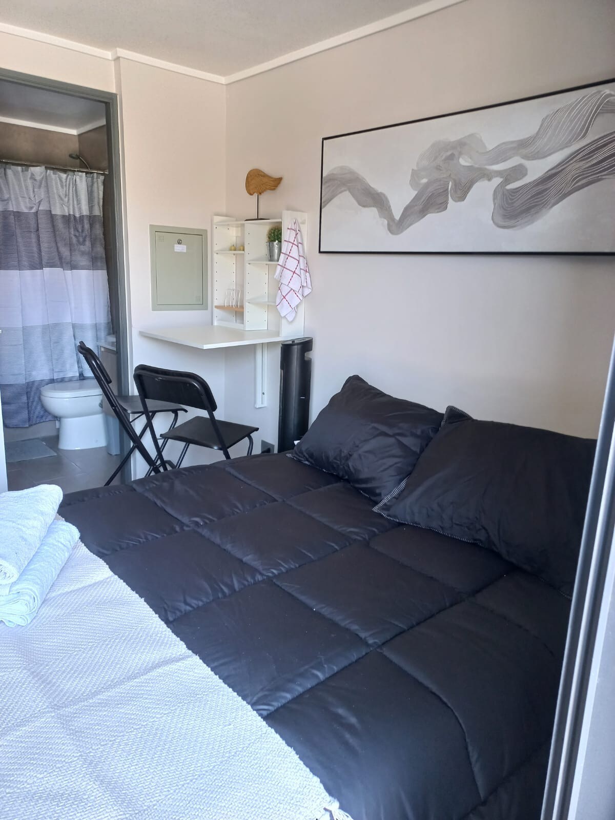 Mūsų studija sukurta taip, kad suteiktų jums puikią komforto ir stiliaus pusiausvyrą. Jame yra dvigulė lova, pilnai įrengta virtuvė ir privatus vonios kambarys. Mėgausitės nemokamu belaidžiu internetu ir ramia atmosfera, kuri leis pasijusti kaip namie. Pasinerkite į turtingą Čilės istoriją apsilankę Komiksų parke ir muziejuje po atviru dangumi, pagerbkite vietinę popkultūrą arba atsipalaiduokite Civic Plaza, kur rasite gyvą muziką ir užsiėmimus visai šeimai.