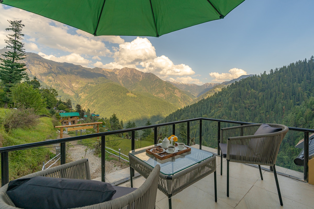 Namai Jibhi su vaizdu į slėnį