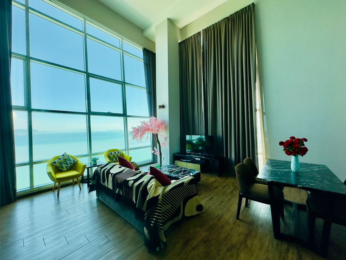 Stunning 2BR Seaview Duplex @ Maritime, George Town. This high-floor duplex offers panoramic ocean views from every angle, a bright double-height living space, and two comfortable bedrooms perfect for families, couples, and small groups. Located at Kapar Singh Drive, one of Penang’s best waterfront spots, you’re just steps from cafés, restaurants, nightlife, and beautiful seaside walks. Quick access to George Town attractions makes this the ideal stay for both leisure and business travelers.
