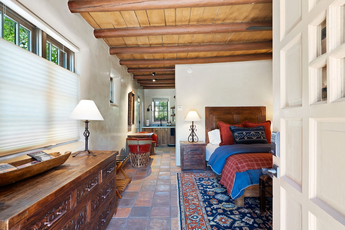 Atsipalaiduokite šioje ramioje, jaukioje ir autentiškoje Santa Fė Casita. Ši žavinga casita yra ramybės ir žavesio prieglobstis. Įsikūręs ant 5 akrų ramaus dykumos kraštovaizdžio, jis siūlo nuošalią poilsiavietę su kvapą gniaužiančiais vaizdais į aplinkinius kalnus. Šioje jaukioje casita yra gražiai apželdinta ir aptverta kieme ir puikiai tinka tiems, kurie ieško privataus pabėgimo, tačiau lieka vos už kelių minučių kelio automobiliu nuo gyvybingos istorinio Santa Fė centro!