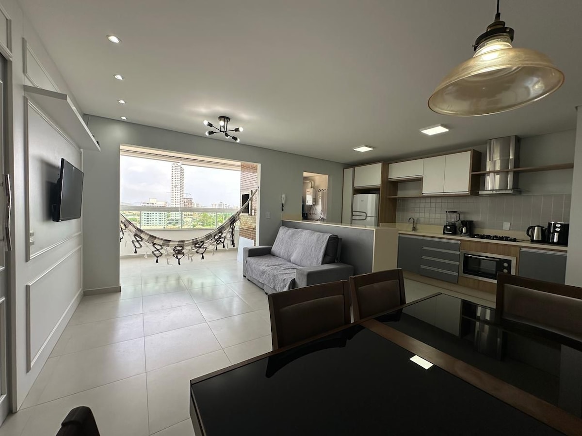 Atraskite modernią ir elegantišką erdvę vos už kelių žingsnių nuo jūros. Mėgaukitės komfortu ir rafinuotumu šiame bute su 2 miegamaisiais su oro kondicionieriais, įskaitant apartamentus, svetaine su išmaniuoju televizoriumi ir oro kondicionieriumi. Įrengta virtuvė ir gurmanų balkonas su kepsnine suteikia unikalių akimirkų su vaizdu į jūrą. Pastate yra baseinas, sūkurinė vonia, pirtis ir sporto salė. Puiki vieta 400 m nuo Armação paplūdimio, netoli restoranų ir Beto Carrero. Užsisakykite dabar ir patirkite tai, kas geriausia Penha!