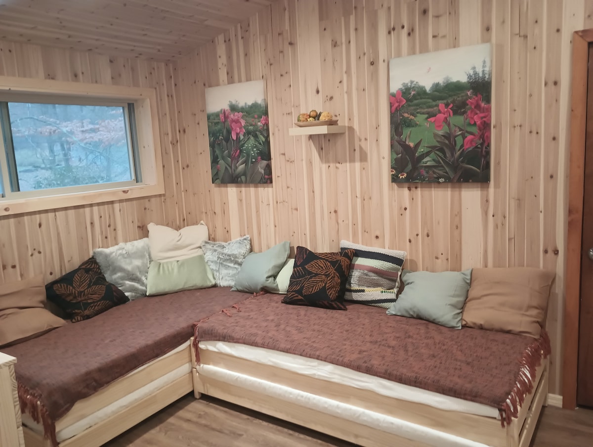 Pabėkite į romantišką mūsų 1 miegamojo trobelės ramybę, puikiai tinkančią poroms, ieškančioms nuošalaus poilsio vaizdinguose Pocono kalnuose Harmonijos ežere, Pensilvanijoje. Šioje jaukioje poilsiavietėje yra dvigulė lova, 1,5 vonios kambario ir ištraukiama sofa-lova, kurioje patogiai gali apsistoti iki 4 svečių. Mėgaukitės jaukiais vakarais prie židinio, pasivaikščiokite po žavingą miesto centrą ir atraskite nuotykius lauke vos už kelių žingsnių nuo savo durų.