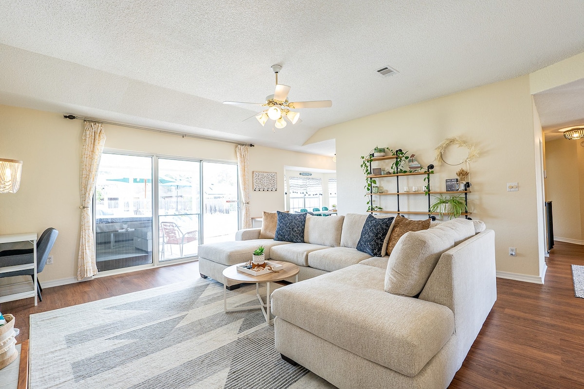 *Jokių augintinių ar vaikų iki 10 metų* Jokių vakarėlių 500 $ bauda Bayou Grande Casita yra kvartalas nuo vandens su virėjo virtuve, vešliomis lovomis ir sofa bei žaidimų kambariu su stalo tenisu ir smiginiu. Keliaukite baidarėmis į įlanką ir pasimėgaukite gražia irklente, kurioje žaidžia delfinai. Ekranuota veranda kavai, gėrimams ar maistui lauke. Mylios pėsčiųjų takų palei vandenį, kur stebime Mėlynųjų angelų praktiką. Navy Point yra puiki žvejyba, valčių rampa, 20 min. iki paplūdimių ir 10 min. iki miesto centro. Vietinių vietų ieškokite mūsų keliautojo vadove.