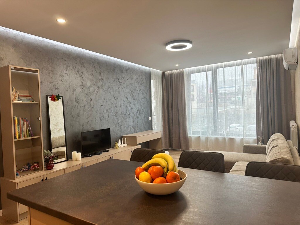 Vieno miegamojo butas, kurio plotas 65 kv. m., puikioje vietoje su ryšiu visai Sofijai. Įsikūręs ramioje gatvėje su savo kiemu 50 kv. m. Apt. pirmame aukšte, modernus, jaukus, šviežias, su įrengta virtuve. Suderina sodo atsipalaidavimą ir miesto centro gyvenimo artumą. Už 150 metrų yra transportas, kuris pasiekia idealų centrą per 15-20 minučių. Netoliese yra 4 prekybos centrai ir Mažmeninės prekybos parkas Knyazhevo su greitojo įkrovimo stotelėmis elektromobiliams.