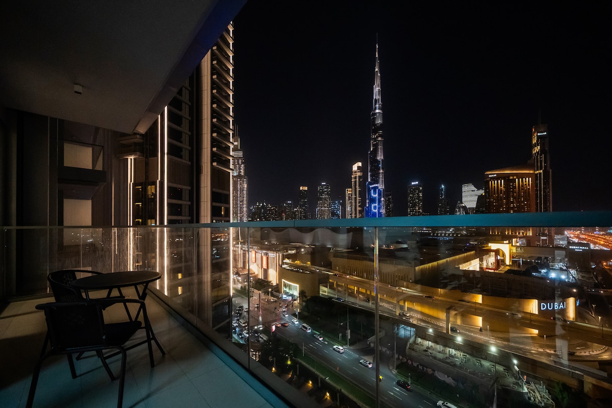 Discover a unique stay in our brand-new 1BR apartment in a New Tower by EMAAR, featuring imperfectly wabi sabi theme. Enjoy breath taking views of the Burj Khalifa and Dubai Mall from the private observation deck, just a 3-minute walk away. Revel in exclusive access to a private observation deck with jaw-dropping vistas of the Dubai Fountains and Burj Khalifa. Unbeatable Location, this luxurious retreat combines comfort, stunning views, and unbeatable convenience.