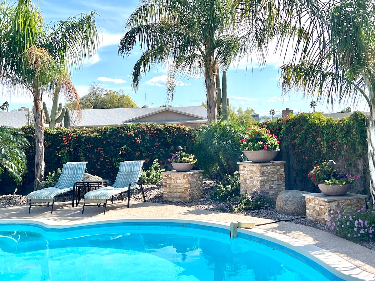 * Private, bright guesthouse immersed in a peaceful oasis of lush landscaping. The guesthouse is right in front of our swimming pool. * Fully remodeled: Kitchen, TV, Wifi, Nespresso & more. * Central location: 10 mins from Old Town Scottsdale, ASU, Sky Harbor Airport, Spring Training & more. Check out my profile for two Luxury B&B suite listings in the main house. Private bedroom & bath, full access to living areas + breakfast. Ask about photoshoots or events across the various property areas.