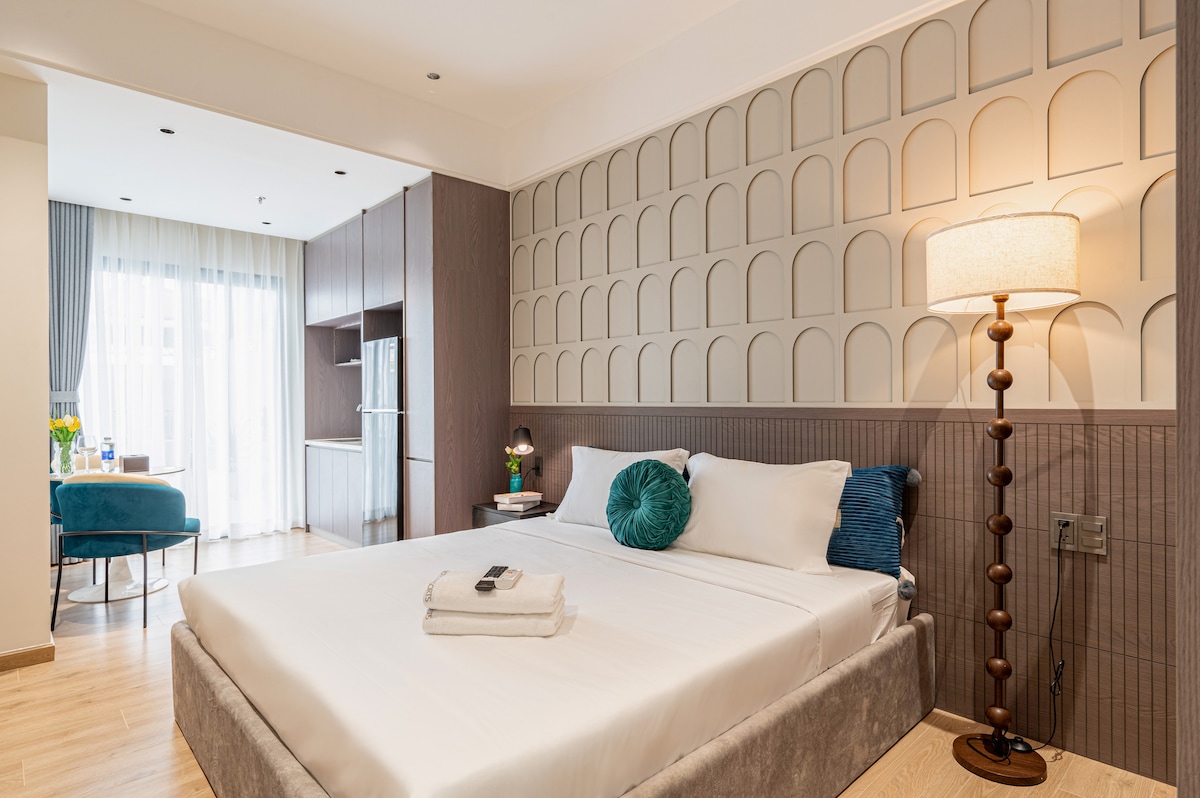 „Republic Plaza“ įsikūrusi aukščiausioje vietoje, Cong Hoa gatvėje, šalia miesto metro linijos ir mažiau nei 3 minutės nuo Tan Son Nhat tarptautinio oro uosto. Butas yra komplekse su lauko baseinu ir prekybos centru. Šiuolaikinio dizaino bute yra miegamasis (su balkonu), oro kondicionierius su medinėmis grindimis, spinta ir lyginimo įranga, atskira svetainė su sofomis, stalais kava ir kabeliniu plokščiaekraniu televizoriumi.