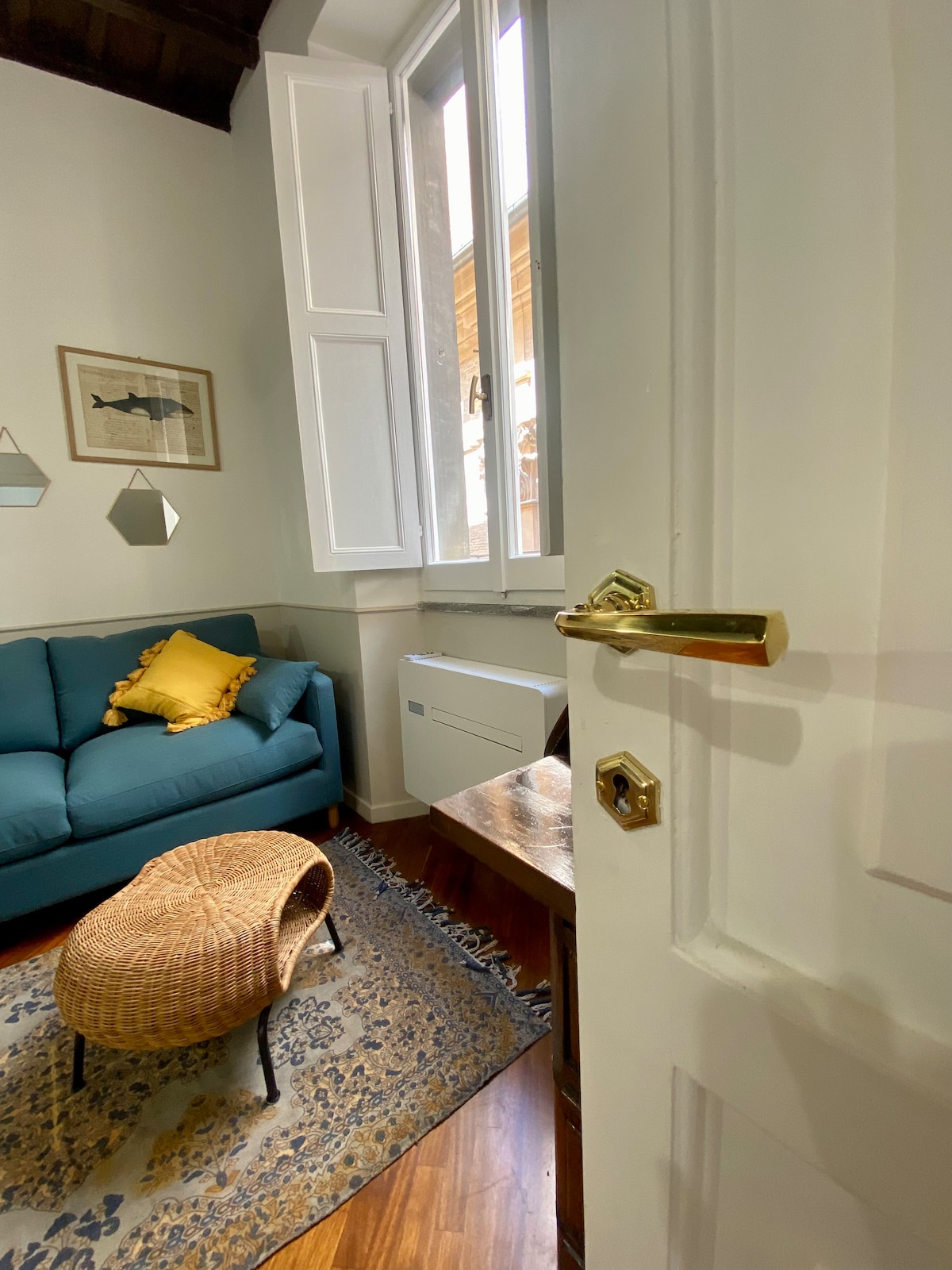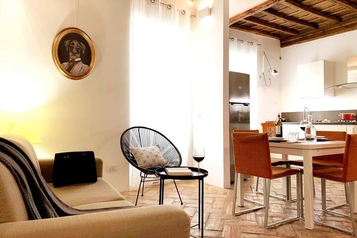 Sveiki atvykę į Cancelleria butą, esantį pačioje Romos istorinio centro širdyje! Šis naujai renovuotas butas pasižymi unikaliu modernaus komforto ir istorinio žavesio deriniu. Kas jums patiks: - Neįtikėtina vieta su vaizdu į Palazzo della Cancelleria - gražiausius Romos renesanso rūmus, pastatytus Bramantės (1486 m.) - Pilnai renovuotas 2024 m., pasižymintis moderniu dekoru. - Karališka lova (180x200 cm) ir sofa-lova su 20 cm čiužiniu, kad būtų užtikrintas aukščiausias komfortas - Originalios medinės lubos, datuojamos šimtmečiais