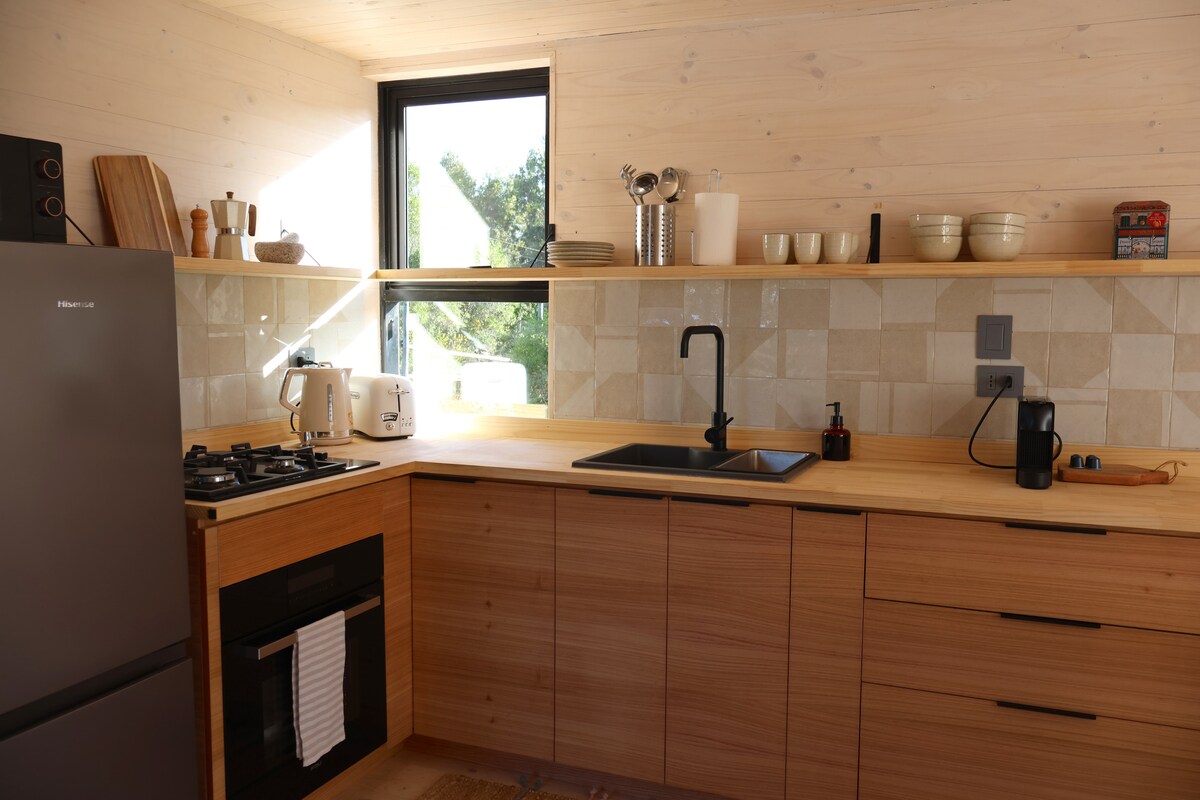Medinė trobelė su sūkurine vonia ir Starlink, iš kurios atsiveria vaizdas į Cáhuil lagūną ir vietinį mišką. Apsuptas tylos, tačiau netoli paplūdimių, lankytinų vietų, restoranų ir parduotuvių, kuriose rasite visko, ko reikia. Yra saulėtos terasos, riedlenčių rampa, laužavietė ir dujinės / medienos kepsninės. Puikus mobiliojo ryšio signalas ir spartus Wi-Fi – tai puiki vieta pabėgti į gamtą. Žiemos sezono metu, kai lyja, rekomenduojama naudoti visureigį.
