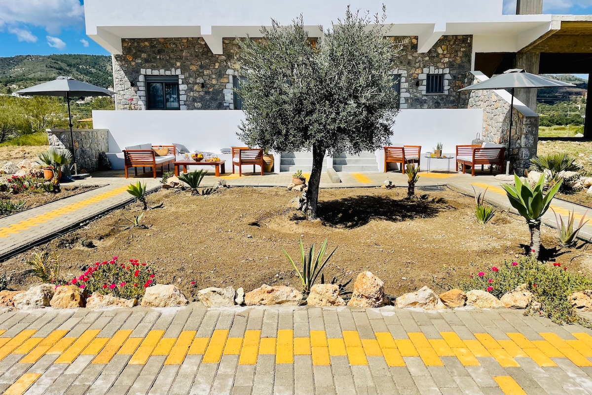 Villa Chrysanthi is located in an idyllic natural landscape. Built with respect for nature, the materials, the finishes, the size, the proportions and the colors perfectly match the environment without being imposed on it. However, the Villa is spacious, comfortable and reasonably organized inside. Built on a slope that ends and is covered with olive trees, pines and various natural beauties, the villa has two levels with plenty of views from all corners of the house in the natural environment!