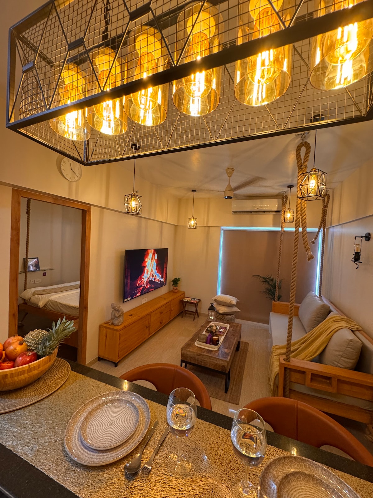 Hun ki Dori reiškia, kad viskas yra tobula, unikali ir rami, o mums tai puikiai tinka. Hunky-dory man yra tada, kai šiuolaikinė elegancija susitinka su raminančiu pakrantės gyvenimo grožiu su komfortu. Jei vaizdai, prabanga ir romantiškas žavesys yra jūsų reikalas, mes jumis pasirūpinsime! Šis 1BHK butas, sukurtas taip, kad suteiktų tobulą pabėgimą, yra jūsų vartai į atsipalaidavimą... galite jį nušauti.. plūduriuoti ore .. o jūs mėgaujatės viešnage su Hun ki Dori..