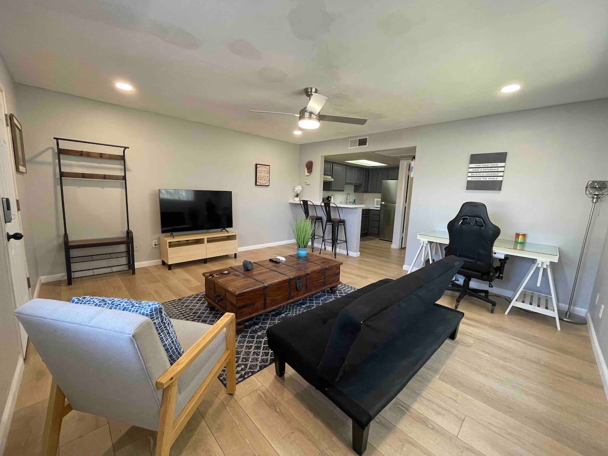 Gražus kondominiumas pačioje Tempe širdyje. Ryškios spalvos su puikiais vaizdais privačiame balkone suteikia šią jaukią gyvenamąją erdvę prabangiu pojūčiu. 75 colių išmanusis televizorius svetainėje ir 55 colių išmanusis televizorius miegamajam, abiejuose yra „Netflix“, „Disney +“ ir „Hulu“. „Starbucks“ yra už 5 min. kelio pėsčiomis, o „Mill Ave“ - už mažiau nei mylios (apie 25 min. kelio pėsčiomis). Baseinas/sūkurinė vonia/sporto salė, paruošta gaminti virtuvė, elektrinis židinys ir skalbyklė/džiovyklė - viskas bute. Valstijos registracijos Nr.: 21381417