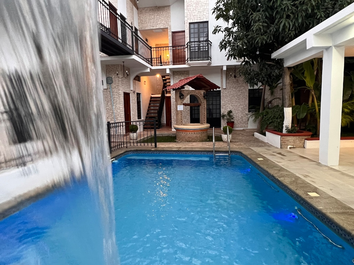 Puikus butas 5 žmonėms, pasižymintis aukštais švaros standartais, įsikūręs istorinio Jalpano centro širdyje su patogiais patogumais. ✅Oro kondicionierius ✅WI-FI Bendra ✅lauko virtuvė ✅Privati automobilio stovėjimo aikštelė ✅Prieiga prie dviejų terasų su nuostabiais vaizdais 🛏️ 2 dvigulės lovos 🛏️ 1 viengulė lova Casa de las Aves yra ideali vieta patogiai apsistoti harmonijoje su gamta.