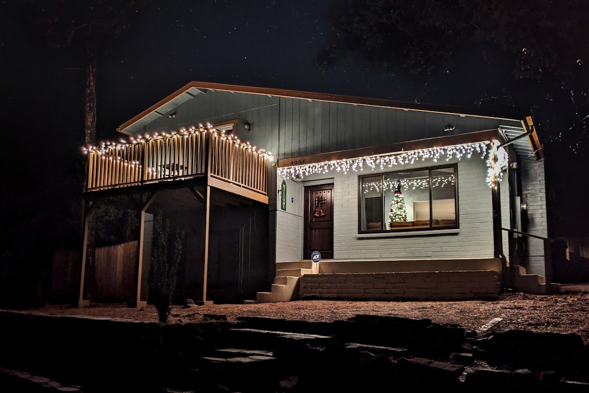 Sveiki atvykę į gražiausią Pine trobelę su didžiausia miesto terasa - viskas visiškai rekonstruota. Mūsų trobelė yra viena iš nedaugelio pušyne/braškių trobelių, besitęsiančių iki nacionalinio miško. Mūsų trobelė, apsupta daugybės didelių pušų ir kvapą gniaužiančių vaizdų, puikiai tinka didelėms arba mažoms grupėms. Milžiniška terasa, kurioje yra daugiau nei 900 kv. pėdų ir žvelgia į nacionalinį mišką, bei šiuolaikiniais patogumais, pvz., sparčiu internetu, tai puiki vieta praleisti laiką su draugais ir šeima.