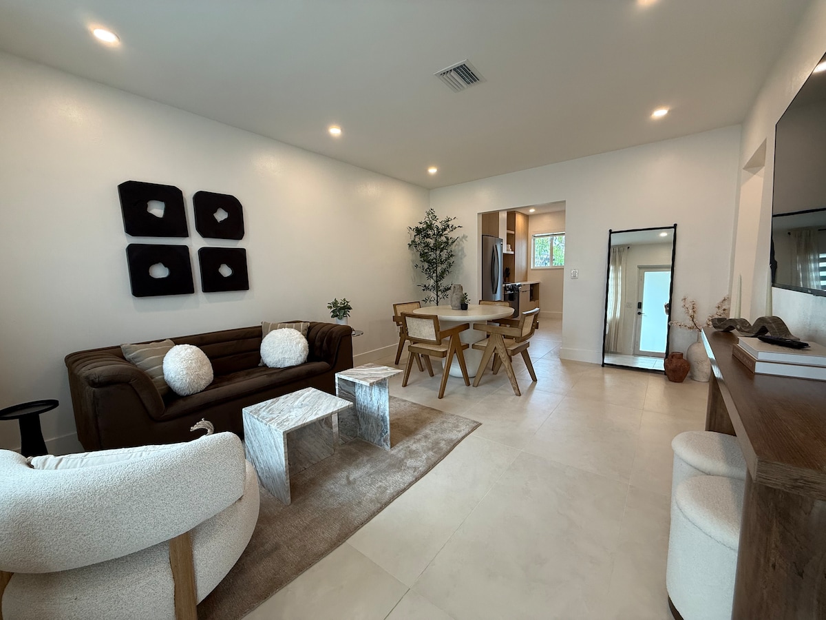 Nuostabus būstas netoli Majamio centro ir Majamio paplūdimio. Šiame bute yra atskiras kiemas, kuriame galima mėgautis lauko valgomojo ir baro virtuve, kurioje yra: šaldytuvas, mikrobangų krosnelė, ledo aparatas, indaplovė, „Keurig“ kavos aparatas ir viena viryklė. Centrinis oro kondicionierius. Skalbyklė/džiovyklė ir du televizoriai. Nemokamas belaidis internetas/interneto prieiga, viena vieta automobiliui ir bendro baseino naudojimas. Butas ir baseinas yra profesionaliai išvalyti 🧼 Puiki vieta apsistoti Majamyje, netoli visko!