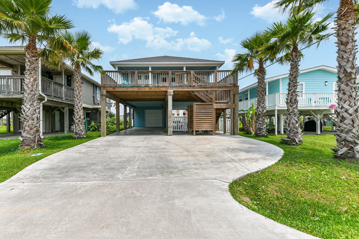 Šis žavingas dviejų miegamųjų ir dviejų vonių paplūdimio namas puikiai tinka mažoms šeimoms ar poroms. Visiškai renovuotas 2011 m., jis turi erdvią apjuosiančią terasą, idealiai tinkančią atsipalaiduoti su vandenyno vėjeliu ir saulėlydžio vaizdais. Be dviejų miegamųjų, yra papildoma miegamoji zona su dviem viengulėmis lovomis ir ištraukiama lova – puikiai tinka vaikams arba papildomiems svečiams. Palm Biče esate vos už 1,6 km nuo Galvestono salos valstijos parko ir už 11,2 km nuo Moody sodų bei Schlitterbahn.