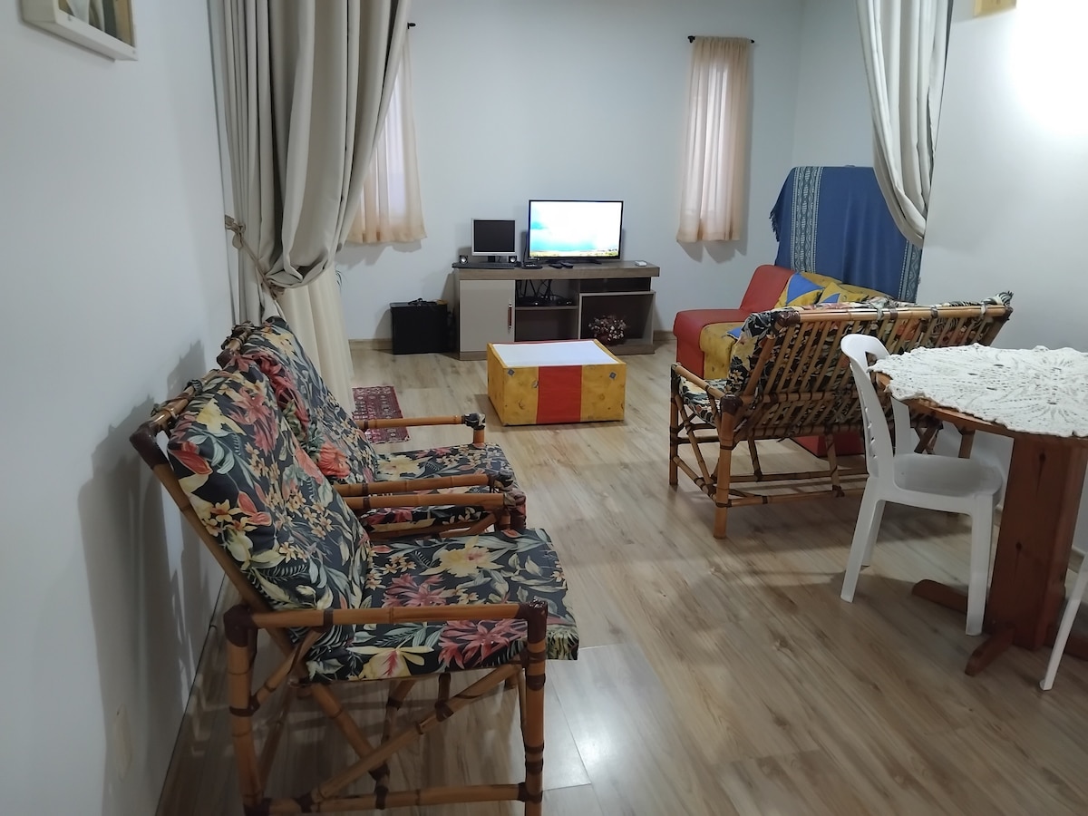 Puikus butas penktame pastato aukšte, pilnai įrengtas, su dviem miegamaisiais, vienu vonios kambariu, balkonu su kepsnine, svetaine, virtuve ir vieta automobiliui. Pastate yra liftas. Puiki vieta Piratuba-SC pagrindinėje aveniu, maždaug 1000 metrų atstumu nuo Parque de Águas Termais (15-20 minučių pėsčiomis). Šalia restoranų, Lanchonetes, Supermercados, vaistinių, kepyklų ir kt. Vaizdas į Fish River ir Sicredi banką pastato pirmame aukšte.