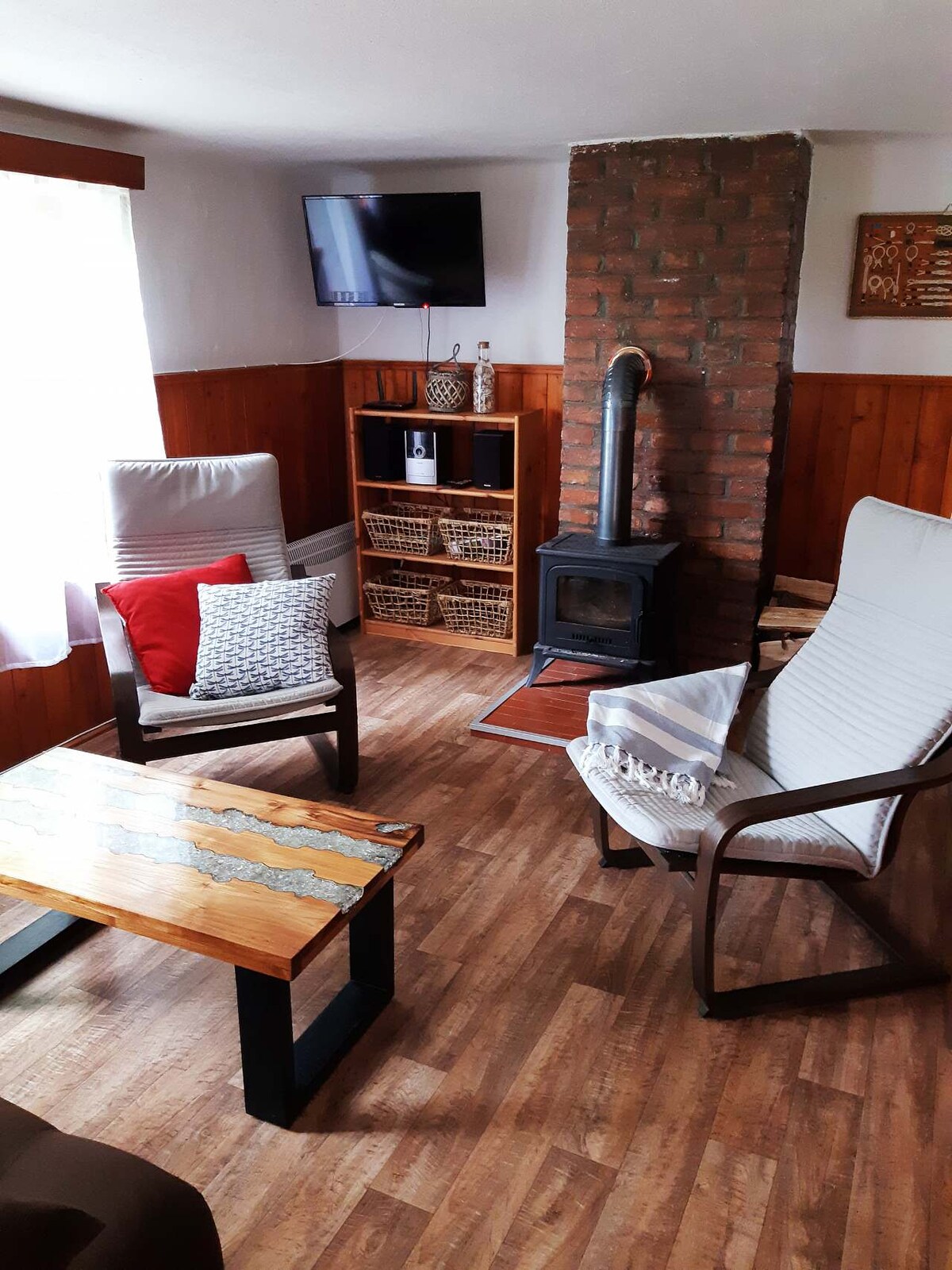 Kviečiame jus į jaukų ir pilnai įrengtą namą su dviem miegamaisiais, kuriame patogiai gali apsistoti iki 7 svečių (su 2 papildomų lovų galimybe). Vasarą oro kondicionierius jus atvėsins, o žiemą galėsite mėgautis šiluma ir romantika prie židinio. Priešais namą rasite poilsio zoną su kepsnine, kurioje galėsite mėgautis vasaros vakarais su šeima ar draugais. Vaikams ir suaugusiems skirta privati kamuolio aikštelė ir žaidimų aikštelė. O jei leidžia oro sąlygos, galite pasivažinėti upe mūsų motorine valtimi.