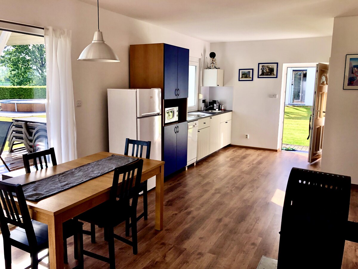 Mėgaukitės Pietų Bohemijos ramybe jaukiame name, iš kurio galima tiesiogiai patekti į sodą, o maudymuisi skirtas ežeras yra vos už kelių žingsnių sode. Čia rasite patogią įrangą, židinį, knygų, „Netflix“ ir žaidimų zoną vaikams. Prieš jums atvykstant atsiųsime jums asmeninį vadovą su patarimais apie ekskursijas, kavines ir gerą maistą. Priimame svečius su šunimis, o mūsų būstas yra netoli Orlíko ir Zvíkovo ir vos už 55 minučių kelio nuo Prahos.