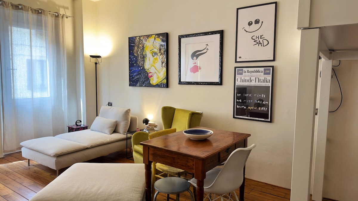Istorinio Pistoia centro širdyje, visai netoli Ztl, už 100 m nuo nuostabaus Piazza del Duomo, sename 60 kvadratinių metrų bute yra visi patogumai. Didelė svetainė su dvigule sofa lova, virtuve ir valgomojo zona, dvivietis miegamasis su įeinama spinta, didelis vonios kambarys su dušu. Saugoma automobilių stovėjimo aikštelė 50 m atstumu.