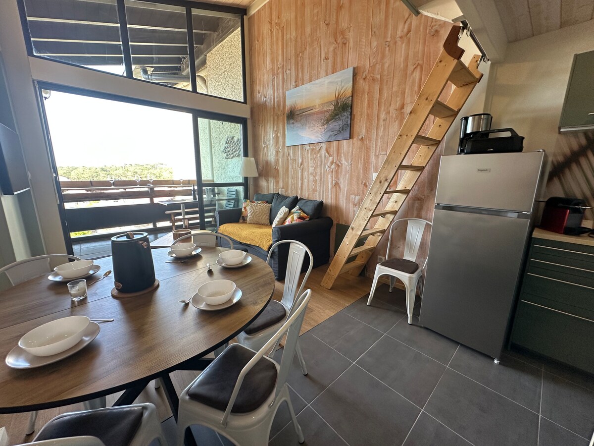 Pirmame 35 m2 aukšte su terasa, visiškai renovuota, atsukta į kopą ir už 100 m nuo paplūdimio pėsčiomis. Apsvarstysite nuostabius saulėlydžius. Restoranai, išskirtinis turgus, vandens parkas yra netoliese, nesinaudojant jūsų automobiliu! 1 svetainė su sofa-lova, televizoriumi, Wi-Fi, pilnai įrengta virtuve (išskyrus indaplovę) 1 miegamasis, vonios kambarys su tualetu. Gyvenamojoje vietoje yra bendras saugus dviračių kambarys. 10pėdų nuo Hossegor, Capbreton, 30 'iš Bajonos.
