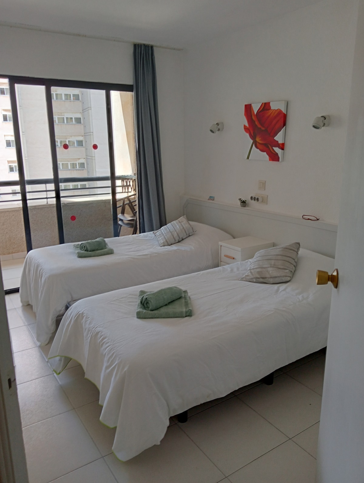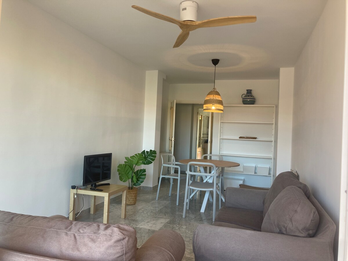 Gražus visiškai renovuotas butas 11-ame didelio bokšto aukšte su baseinu ir žaidimų aikštele. Jie yra 70 m² ploto ir susideda iš svetainės , patogios sofos, 55 colių išmaniojo televizoriaus,Wi-Fi, NETFLIX,oro kondicionieriaus su amerikietiška virtuve ir visa jo įranga, 1 miegamasis su dvigule lova ir dar vienas stiklinis miegamasis, kuriame yra 2 90x190 cm rėmai. Viskas puošta balta ir žalsvai melsva. Chulisimo! Jis yra fantastiškoje vietoje, netoli daugelio patogumų ir vos už 300 m nuo paplūdimio.