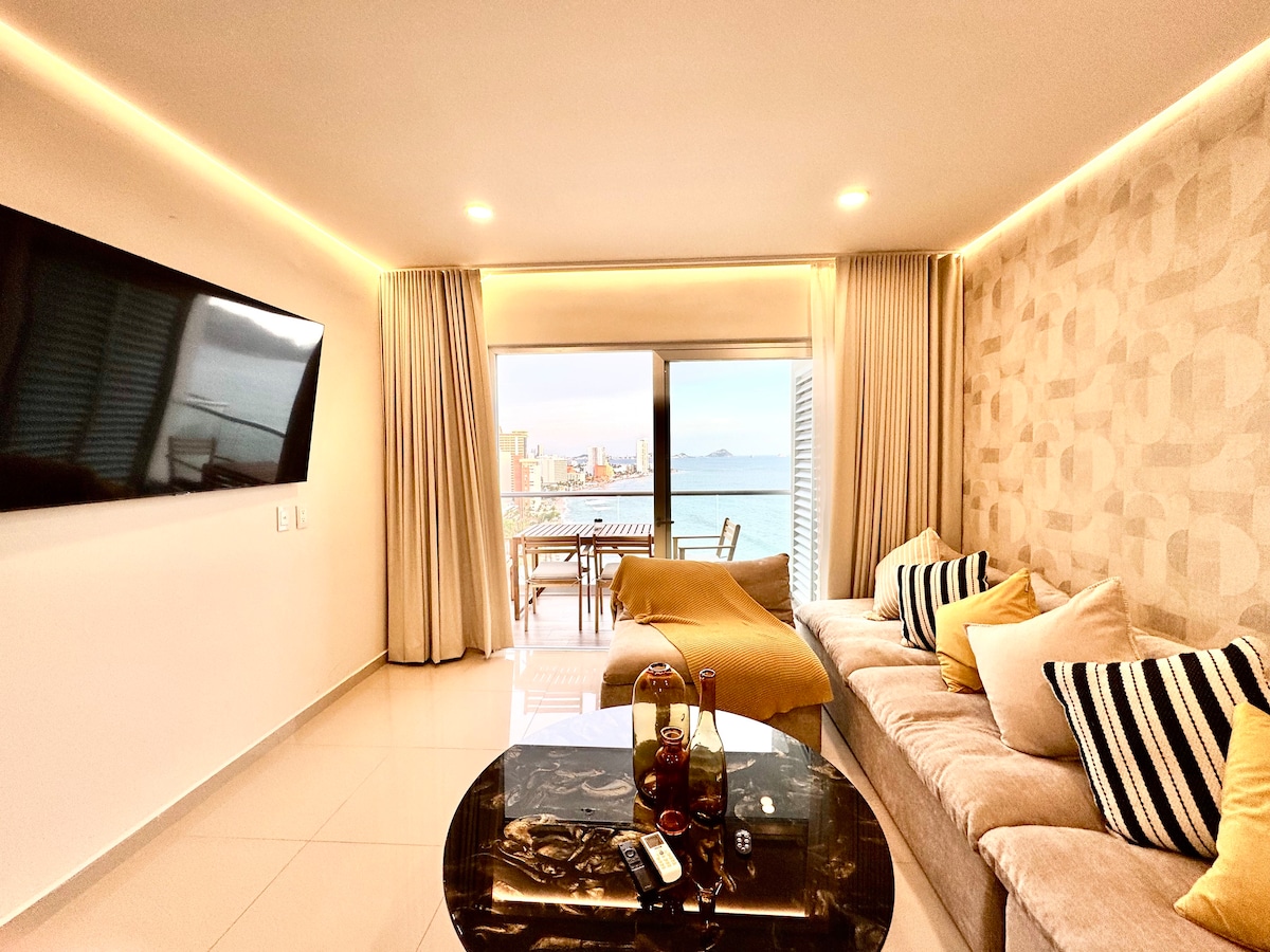 El condominio es muy seguro y cuenta con amplios espacios en todas sus áreas, ubicado justo frente a la playa, sobre el malecón (lugar donde se realiza el icónico carnaval); Al estar ubicado en un nivel Quince, se puede disfrutar de una hermosa vista y de los hermosos atardeceres que junto a las 3 islas nos brindan una experiencia inolvidable. La Playa ubicada al frente cuenta con palapas con variedad de mariscos, pescados y otras especialidades locales, así como refrescantes bebidas.