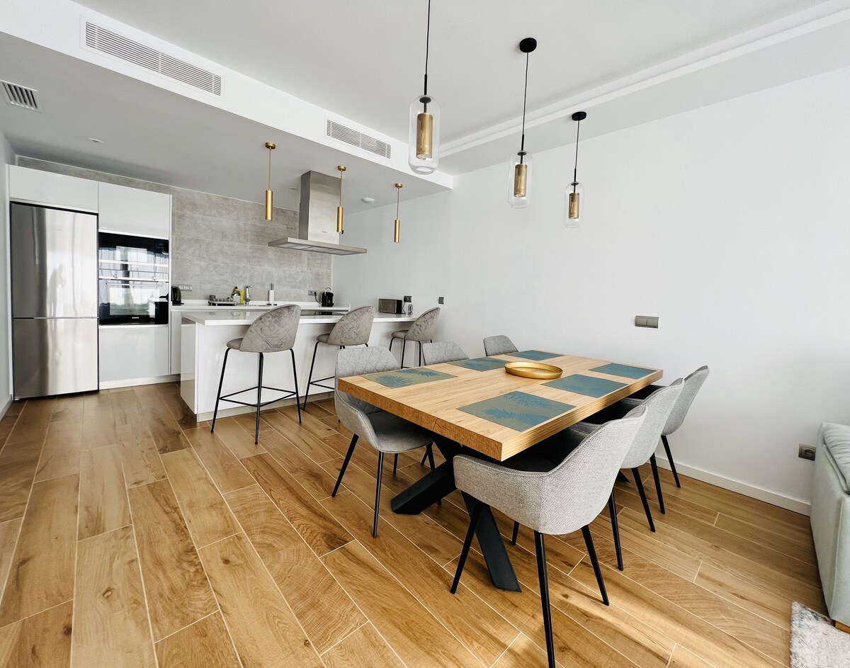 Butas su 2 miegamaisiais ir 2 vonios kambariais, kuriame yra daug vietos daiktams. Langai yra trigubai įstiklinti, todėl erdvėje tvyro labai rami atmosfera. Erdvi terasa leidžia gražiai praleisti laiką lauke su gražiu vaizdu į paplūdimį ir palmes. Yra rašomasis stalas su Wi-Fi. Svarbu pažymėti, kad šiame bute taip pat yra grindų šildymo sistema, praktiška žiemos mėnesiais. Už 5 min. kelio pėsčiomis nuo paplūdimio arba Sotograndės uosto parduotuvių ir restoranų.