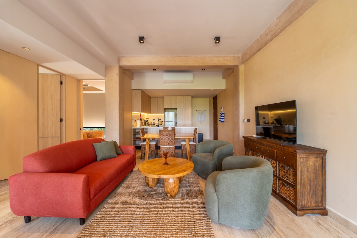 Escape to your own private rooftop oasis with a plunge pool, outdoor dining, and stunning tropical views—just minutes from Playa del Carmen’s famous 5th Avenue and beaches. Modern luxury, resort amenities, and complete comfort await. Relax in a beautifully designed condo featuring floor-to-ceiling windows, a stylish living area, full kitchen, private balcony, and two serene bedrooms with premium bedding. Perfect for couples, small families, looking for space, privacy, and resort comfort
