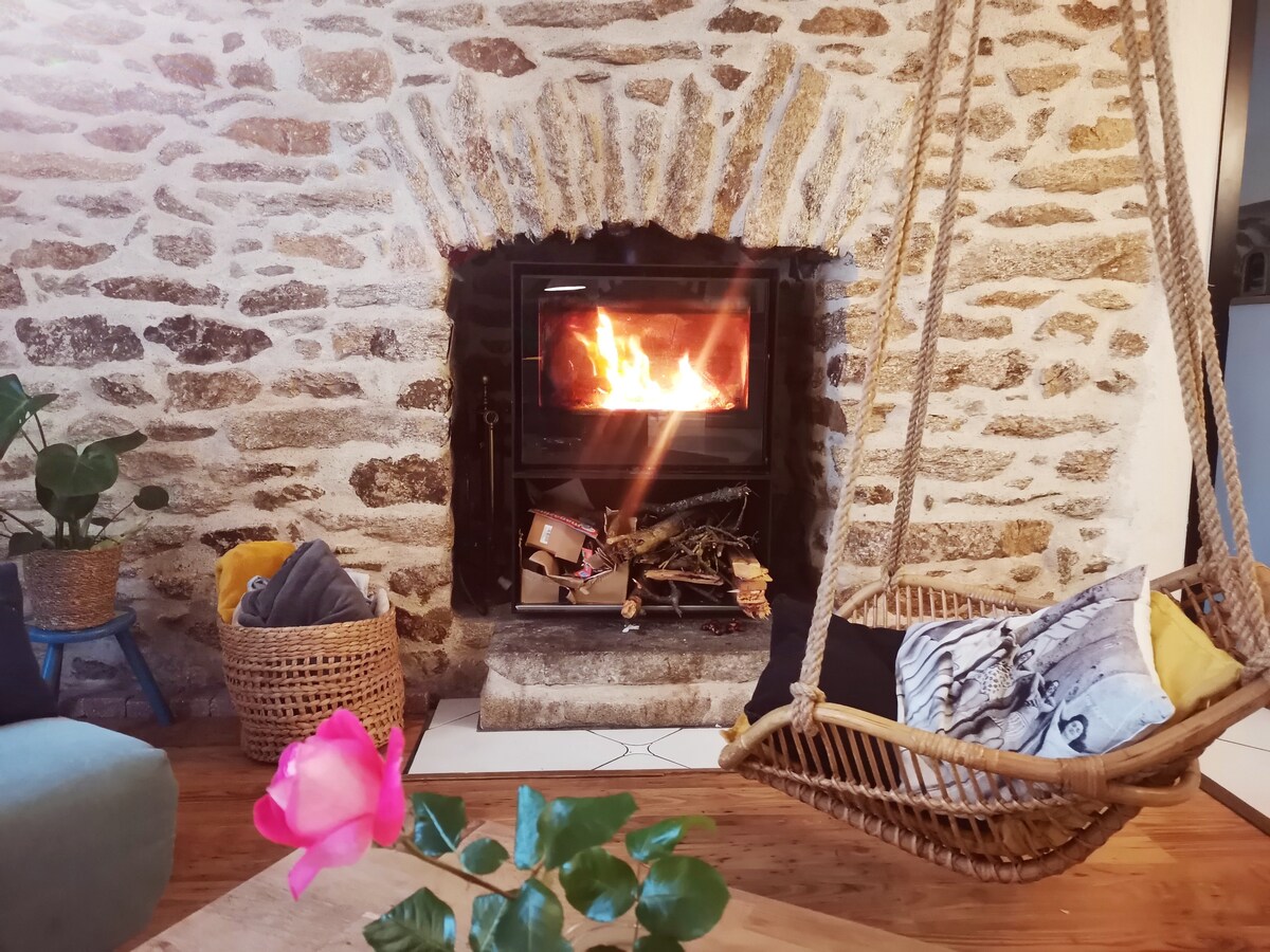 Gana 5 žmonių kotedžas 5 kaimelyje, kuriame yra 5 namai, visi patogumai netoli paplūdimių, istorinio Quimper centro, GR34 ir žaliųjų takų - visa tai yra daugiau nei vieno hektaro parko širdyje. Ateikite ir įkraukite baterijas bei mėgaukitės didelio dydžio baseinu (12x6), šildomu nuo birželio vidurio iki rugsėjo vidurio, ir kepsniais su draugais ir (arba) šeima. Svečiai gali mėgautis petankės aikštele, stalo teniso stalu, badmintonu ir sūpynėmis (vaikams iki 10 metų).