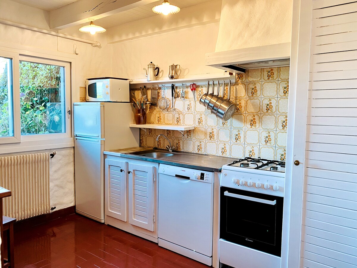 Šis kotedžas, esantis už 100 m nuo jūros, yra puiki vieta įkrauti baterijas, skaityti prie židinio arba sodo balduose. Interjeras gražus ir šviesus. Galite naudotis privačiu sodu, nukreiptu į pietus. Jūsų vaikai smagiai praleis laiką didelio bendro sodo sūpynėse arba prie gyvūnų (arklių, vištų ir ožkų). Gražus kraštovaizdis, kurį galima apmąstyti palei pakrantę. Žygiai vietoje naudojant GR34. Namas šalia kito gite.