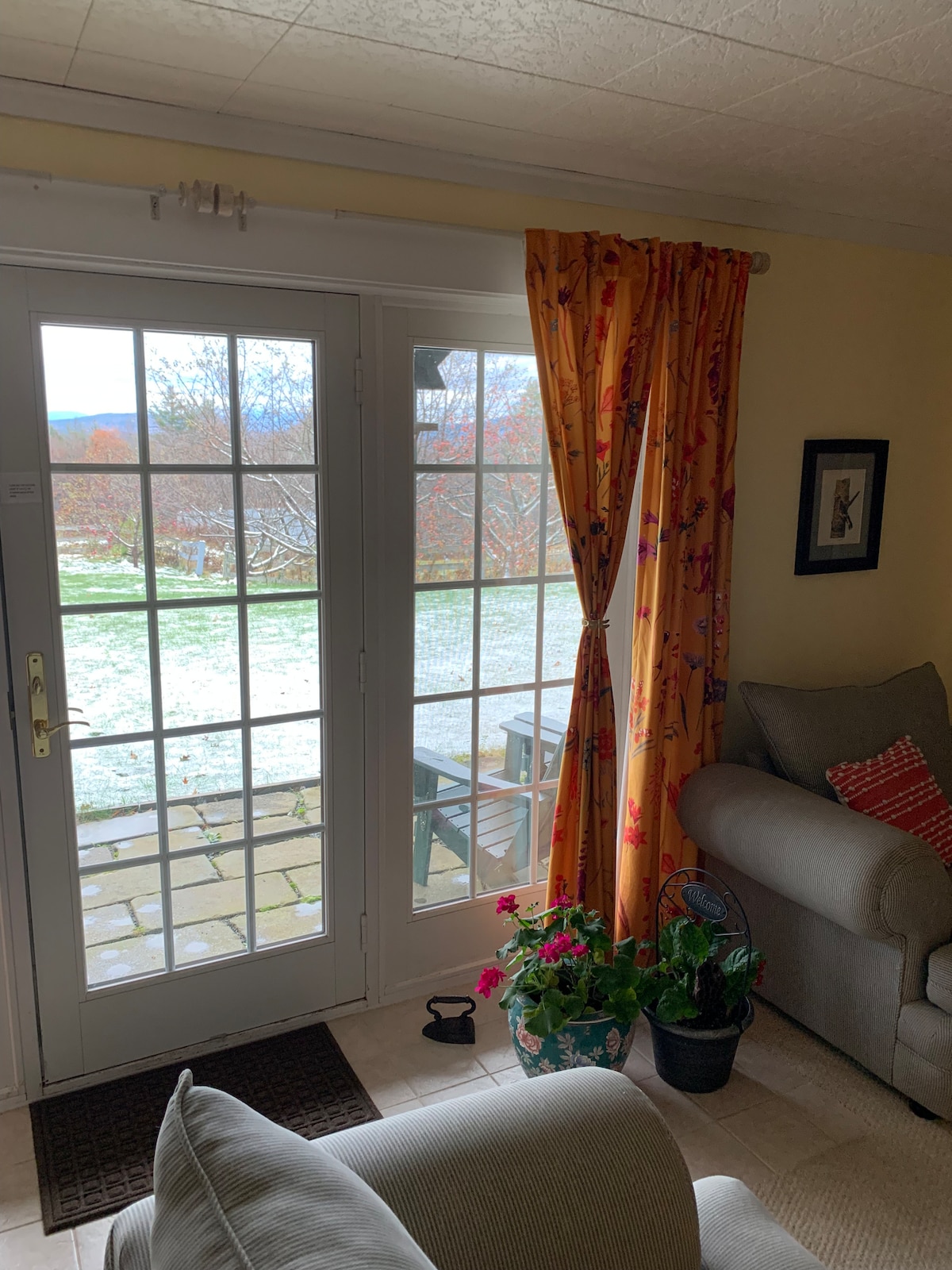 Netoli miesto ir I 93, kaimo rojus. Turite savo įvažiavimą ir atskirą denį su nuostabiais kalvų ir sodų vaizdais. Lovą supa dvi langų sienos su atspalviais. Šiuolaikiniame vonios kambaryje yra „Hearthstone“ dujinė viryklė, lova ir didžiulis dušas. Virtuvėje yra viso dydžio šaldytuvas, virtuvės stalviršis ir kriauklė, mikrobangų krosnelė, maišytuvas ir puodas. Yra televizorius su kabeline televizija, Netflix ir kt. Jūsų patogumui tiekiame kavą ir pusryčių maistą.