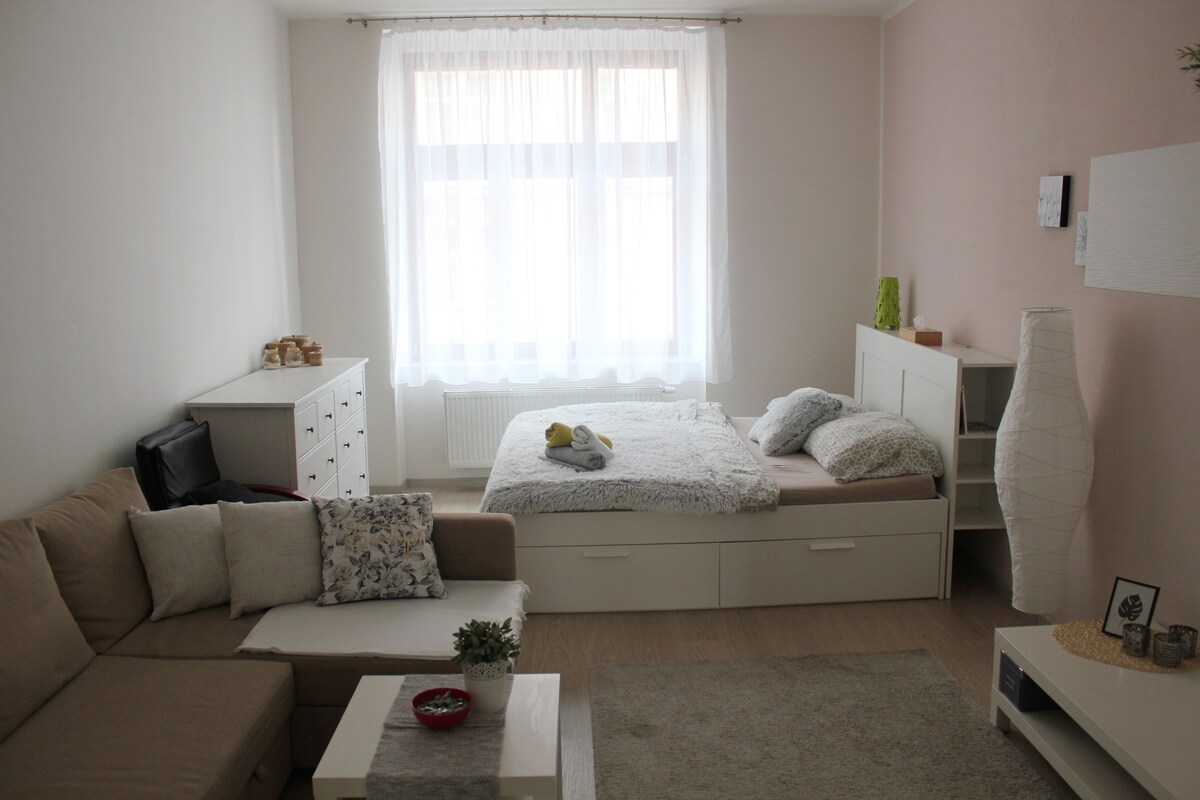 Mūsų butas jaukus ir ramus, todėl tikimės, kad puikiai praleisite laiką čia. Butas yra pačioje miesto širdyje. Atvykimas: kadangi esame užsiėmę atvykimu asmeniškai , galite pasiimti raktą netoliese(8 min. pėsčiomis)nuo buto Pagal Pilzeno miesto taisykles, kiekvienas svečias turi sumokėti turistinį mokestį ir užpildyti formą su informacija apie save. Nuo 2023 m. gruodžio 1 d. mokestis yra 25 Čekijos kronų vienam asmeniui ir dienai. Ačiū.