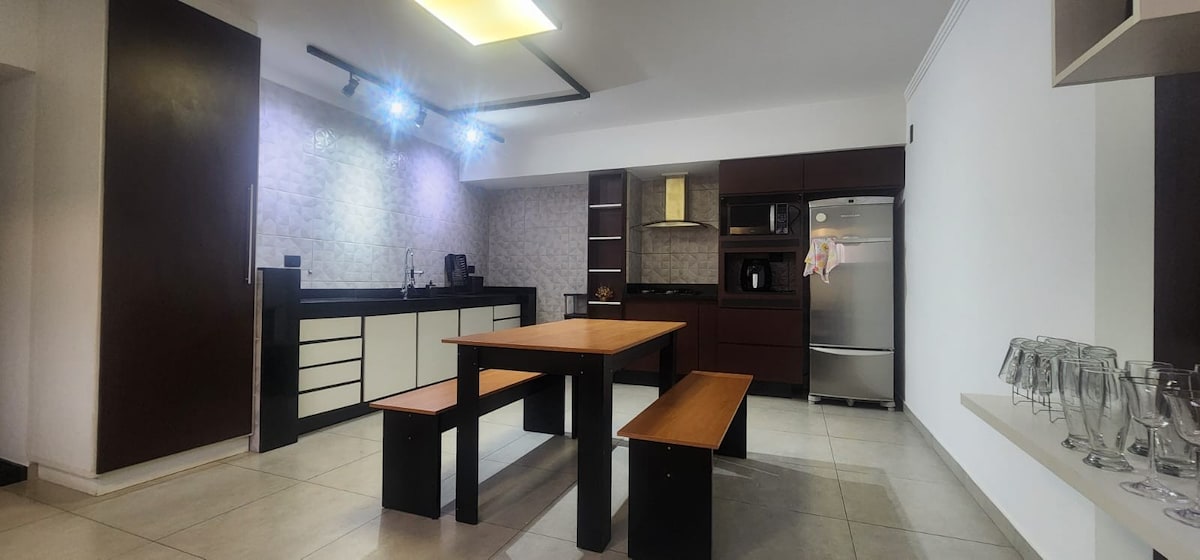 Mėgaukitės geriausiais Poços de Caldas patiekalais apsistoję miesto centre. Šiuose namuose mėgaukitės jaukia atmosfera ir suasmenintu dekoru. Namas perneša ramybę ir tylą, net jei jis yra vos už 450 metrų nuo Motinos bažnyčios. Turime keturias lovas, vieną dvigulę ir dvi viengules lovas. Tačiau namas yra erdvus ir turi įvairią aplinką, todėl daugiau žmonių gali miegoti kitose erdvėse. Atsipalaiduokite lauke su puikiu baseinu suaugusiems ir vaikams.