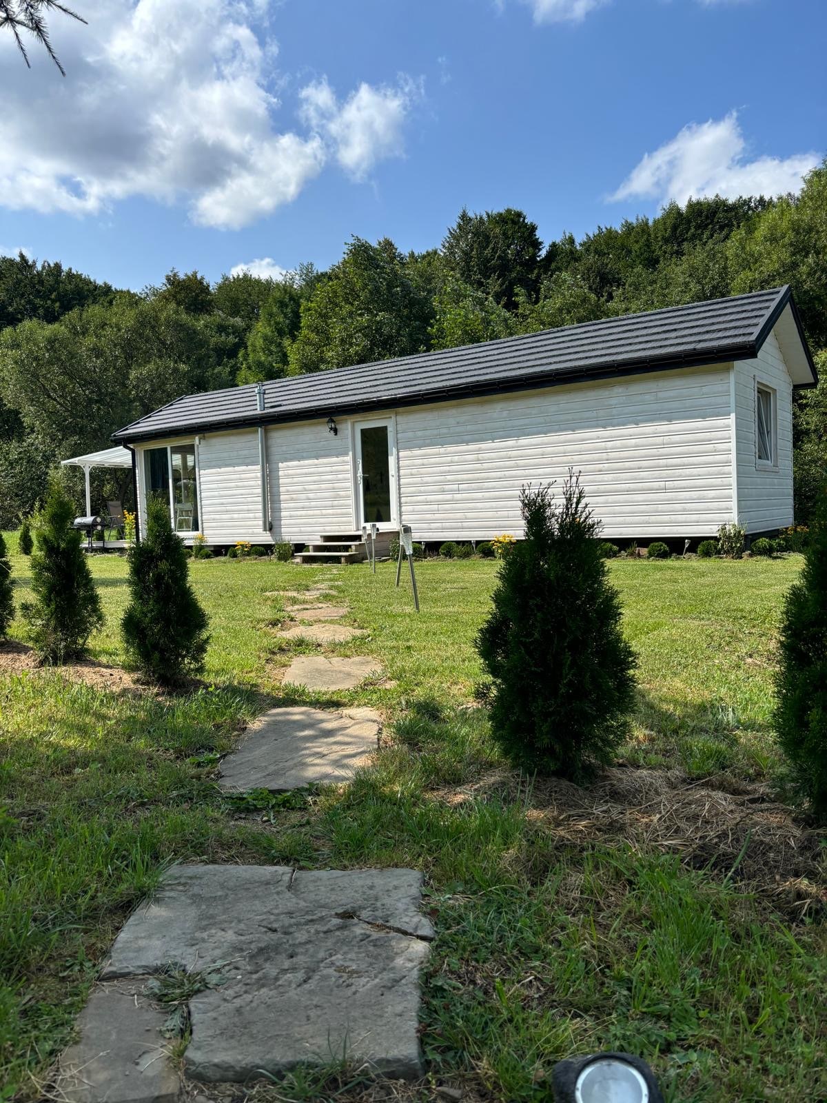 Miejsce na pobyt i odpoczynek dla rodziny, pod lasem, ogrodzenie. Domek składa się z dwóch sypialni, łazienki, kuchni i salonu. Dostępna cepła woda i ogrzewanie drewnem oprócz tego ,garaż,duży grill ,wędzarnia, piec do pizzy na drzewo, miejsce na ognisko, w sezonie basen, plac zabaw, huśtawki i inne Brama otwierana na pilota