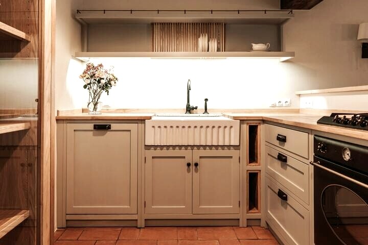 Bute yra šviesus ir erdvus miegamasis su prabangia dvigule lova, kurią papildo minkštos tekstūros ir neutralūs tonai. Vonios kambaryje su moderniais patogumais yra dušo komplektas originalioje istorinėje namo arkoje, suteikiantis erdvei išskirtinio charakterio. Šis butas yra puikus pasirinkimas tiems, kurie ieško šiuolaikinio komforto ir istorinio miesto atmosferos dermės 🤍