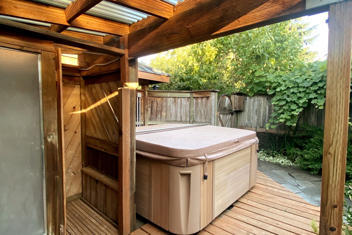 Ši poilsio vieta sukurta išskirtinai tam, kad padėtų jums atsipalaiduoti. Kiekvienas sezonas atneša savotišką magiją. Turėsite savo sūkurinę vonią ir lauko kedro dušą. Pasivaikščiokite iki upės arba mėgaukitės ramiu pasivažinėjimu dviračiu per upę vienu iš trijų istorinių Oregono keltų. Mėgaukitės netoliese esančiais vynuogynais arba tiesiog atsipalaiduokite grožėdamiesi aplinka. Siūlome žaidimų, užkandžių ir visko, ko jums reikėtų, kad galėtumėte mėgautis viešnage. (Jei jums reikia ko nors, ko mes neturime, tiesiog parašykite ir mes tai jums parūpinsime!)🥂