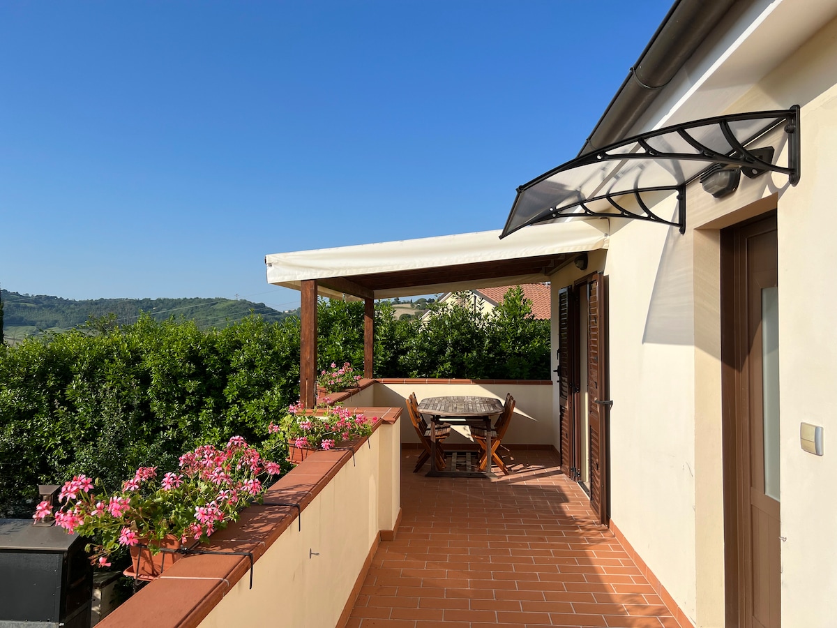 Jūsų tobulas poilsis Markės kalvose. Jaukus ir šviesus kambarys nuostabioje viloje. Įsikūręs už nedidelio kaimo netoli Ankonos, netoli jūros, tai yra atsipalaidavimo ir ramybės oazė, puikus atspirties taškas atrasti geriausias galimybes, kurias siūlo Markės regionas: Urbino, Recanati, Loreto, Frasassi urvai, be daugelio Adrijos Rivjeros atrakcijų, nuo Senigalijos iki Portonovo, Numana ir Sirolo.