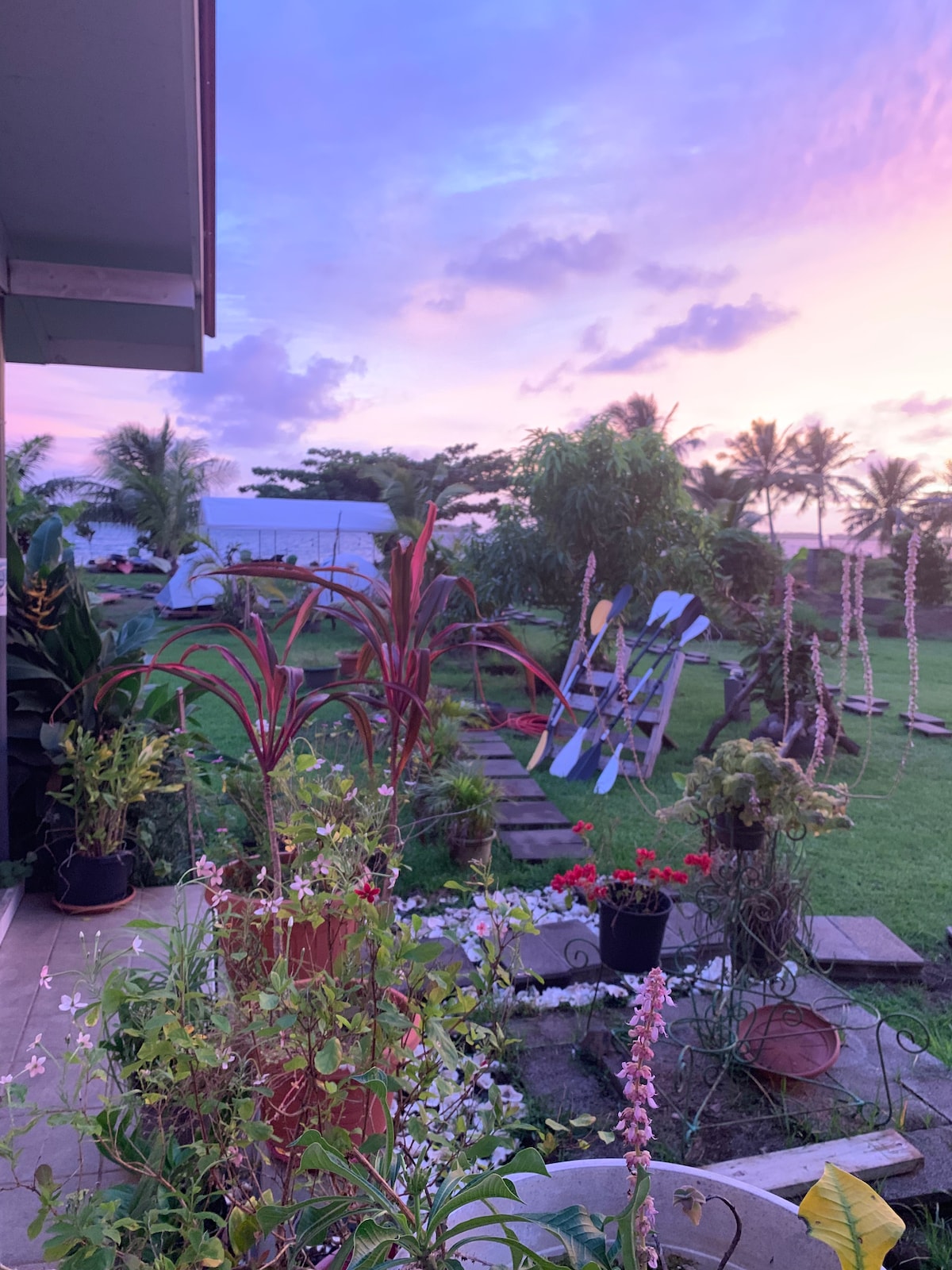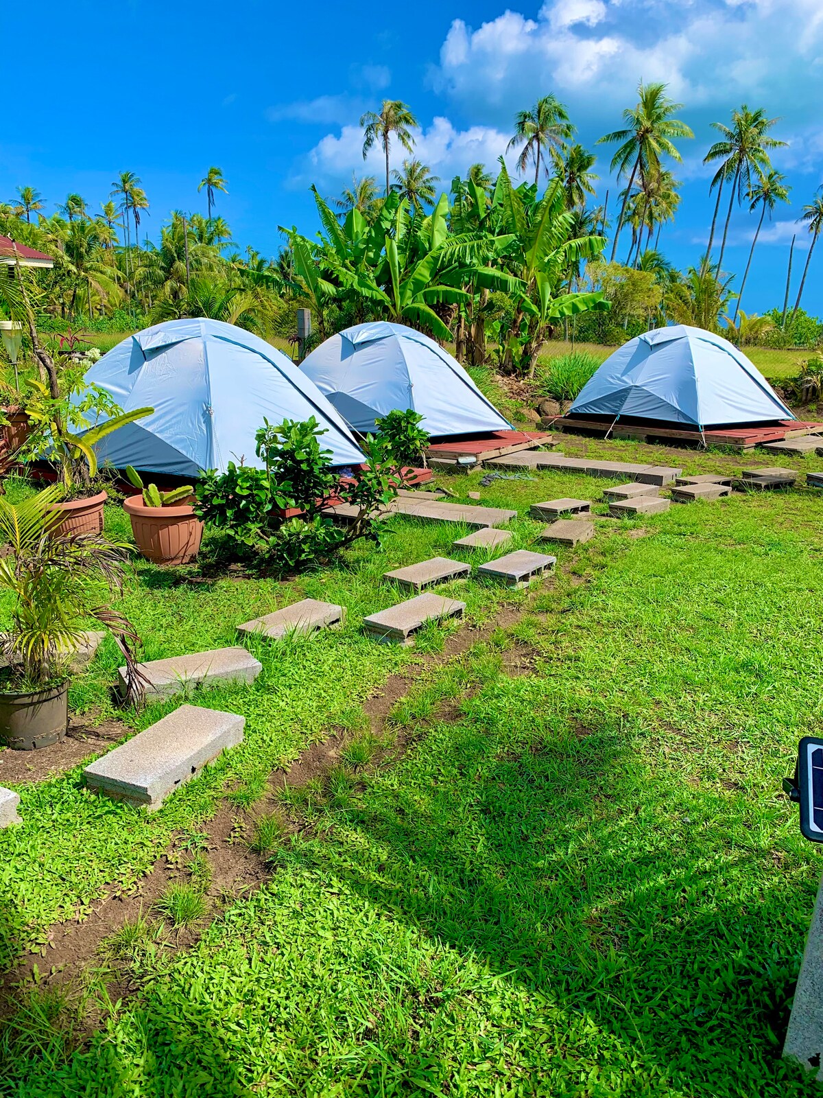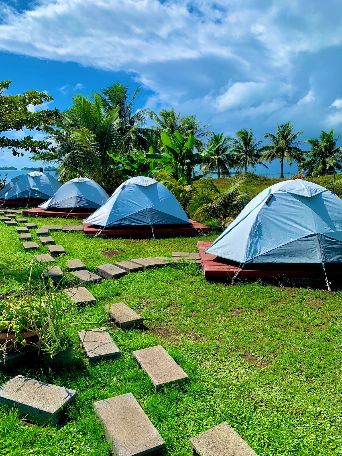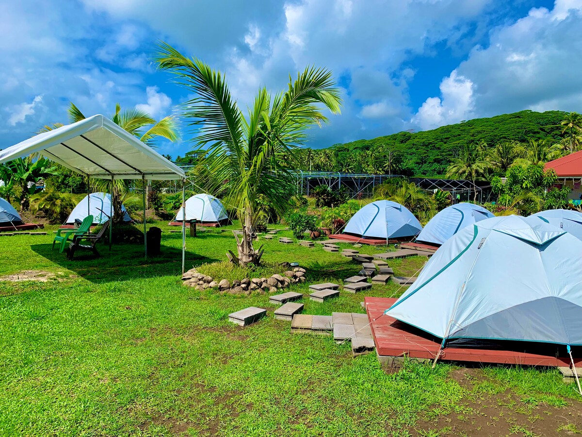 Mėgaukitės šiuo unikaliu, nebrangiu būdu apsistoti Oahu šiaurinėje pakrantėje! Mūsų palapinė yra tarp vešlios žalumos, iš kurios atsiveria nuostabus vaizdas į Ko'olau kalnų grandinę. Patirkite gamtos grožį neprarandant komforto! Mūsų palapinėje yra 2 jaukios karališko dydžio lovos, užtikrinančios ramų nakties miegą. Būsite mažiau nei už pusės mylios nuo artimiausio paplūdimio ir už mylios nuo artimiausio prekybos centro. Bendri tualetai ir lauko virtuvėlė su mikrobangų krosnele, orine gruzdintuve, geriamuoju vandeniu ir indais.