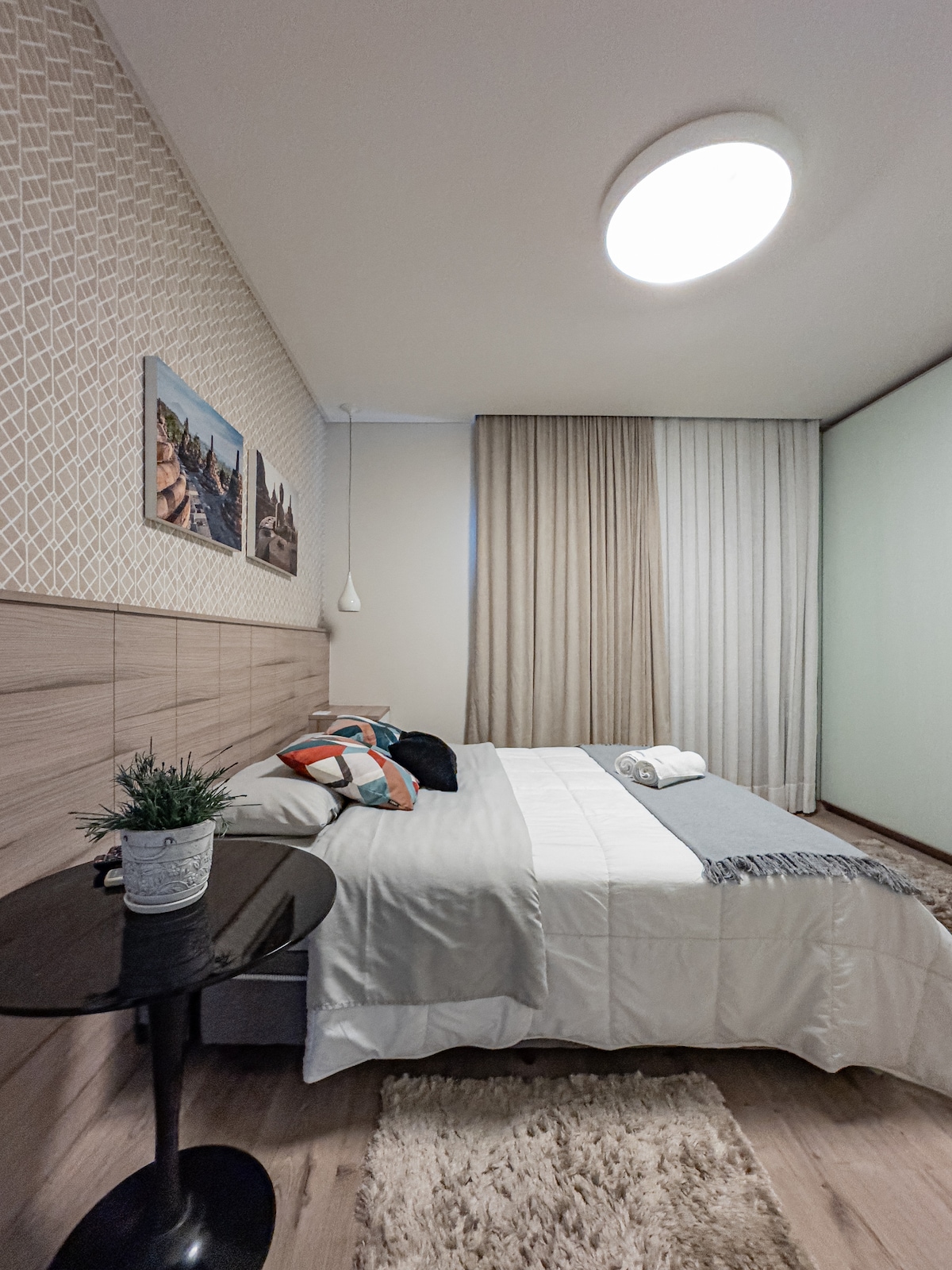 Mėgaukitės moderniu šio buto, kuriame yra šviesus ir jaukus dekoras, stiliumi. Labai patogios lovos pelnytam poilsiui po ilgos ekskursijų dienos didžiausiame Brazilijos Vokietijos mieste. Paimkite tą karštą galvą anksti ryte tradiciškiausiose miesto kepyklose ir konditerijos parduotuvėse pėsčiomis. O kai lankotės pagrindinėse Pomerode lankytinose vietose, jūsų automobilis yra garaže. 550 metrų arba 7 m pėsčiomis nuo zoologijos sodo, Vila Encantada ir Centro Histórico