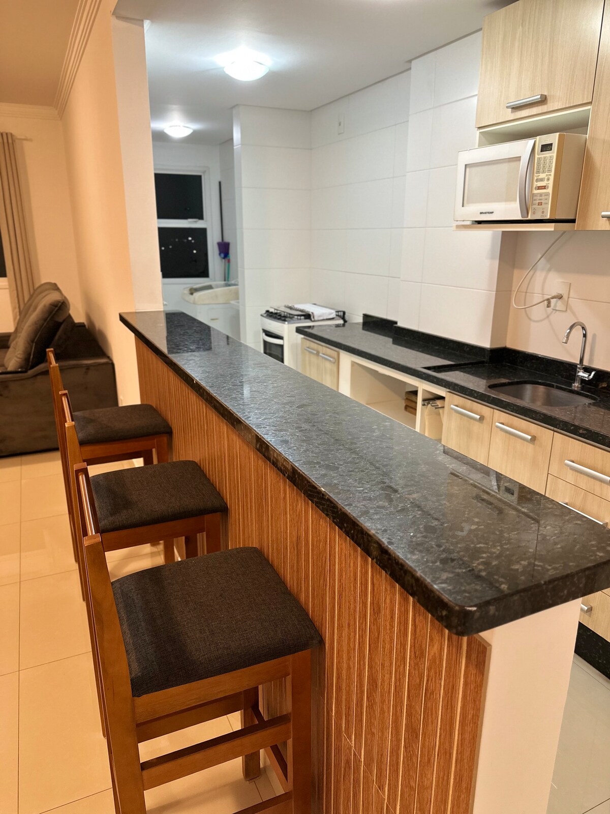 Yra visas butas, kuris nėra bendras, trečias aukštas, vidaus telefonas, virtuvės konstrukcija su įrankiais, šaldytuvas, viryklė, mikrobangų krosnelė, skalbimo mašina, 43 colių išmanusis televizorius su išleistu netflix, Wi-Fi 5g 200 mega iš Oi, sofa, dvigulė lova ir drabužių spinta, viengulė lova, kepsninė balkone, didelis veidrodis, lankstus atvykimas ir išvykimas. Viskas jūsų žinioje, rami vieta. Priimkite svečius su patirtimi, apsilankykite kitame mano būste, esančiame kondominiume, ir peržiūrėkite atsiliepimus.