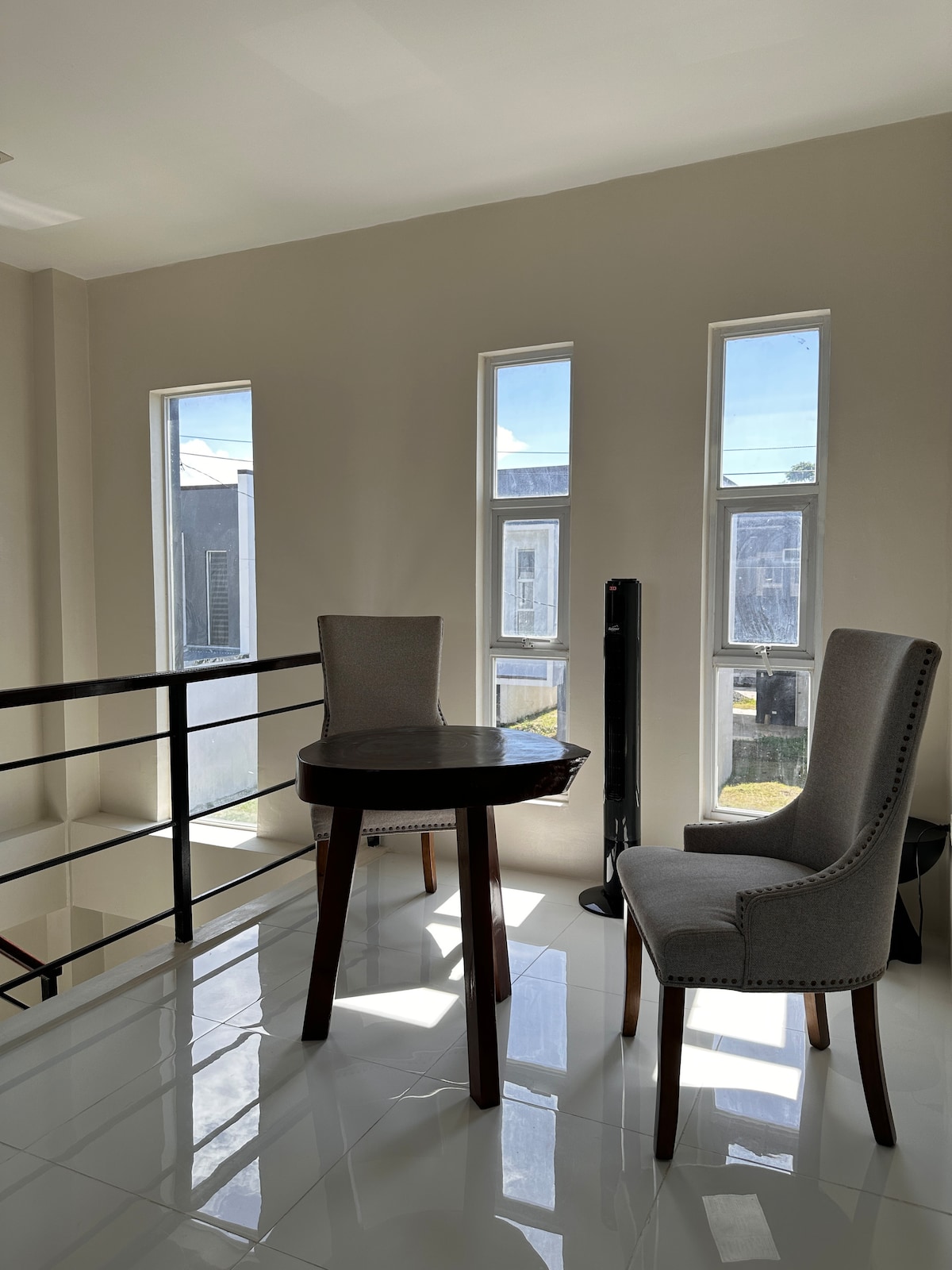 A stylish 2-storey home featuring 4 air-conditioned bedrooms (king, bunk, and 2 twin doubles), 3 bathrooms with hot showers, a private pool, a grassy yard, and bamboo shade. It includes a fully equipped kitchen, secure parking for 6-8 cars, and minimalist elegance in Recreo Pontevedra, just 1 hour from Bacolod—perfect for families or small groups.