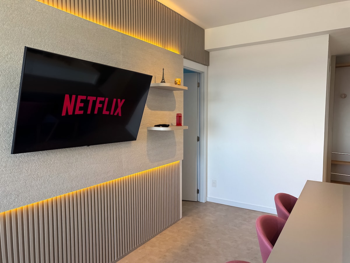 Brand new studio 43sqm in TREND CITY, amazing panoramic view (16th floor) to Guaíba Lake, Lake Shore and Marinha Park, condominium with complete infrastructure, concierge 24h, parking space, gym, 20m heated pool. Queen size beds, space to work with laptop, hot and cold air-conditioning 24,000, Smart TV 50, cable TV NET HD with 250 channels, Wi-Fi 250 mbps, barbecue pit, wash and dryer machine, iron, hair dryer, microwave, airfryer, tag and electronic lock.