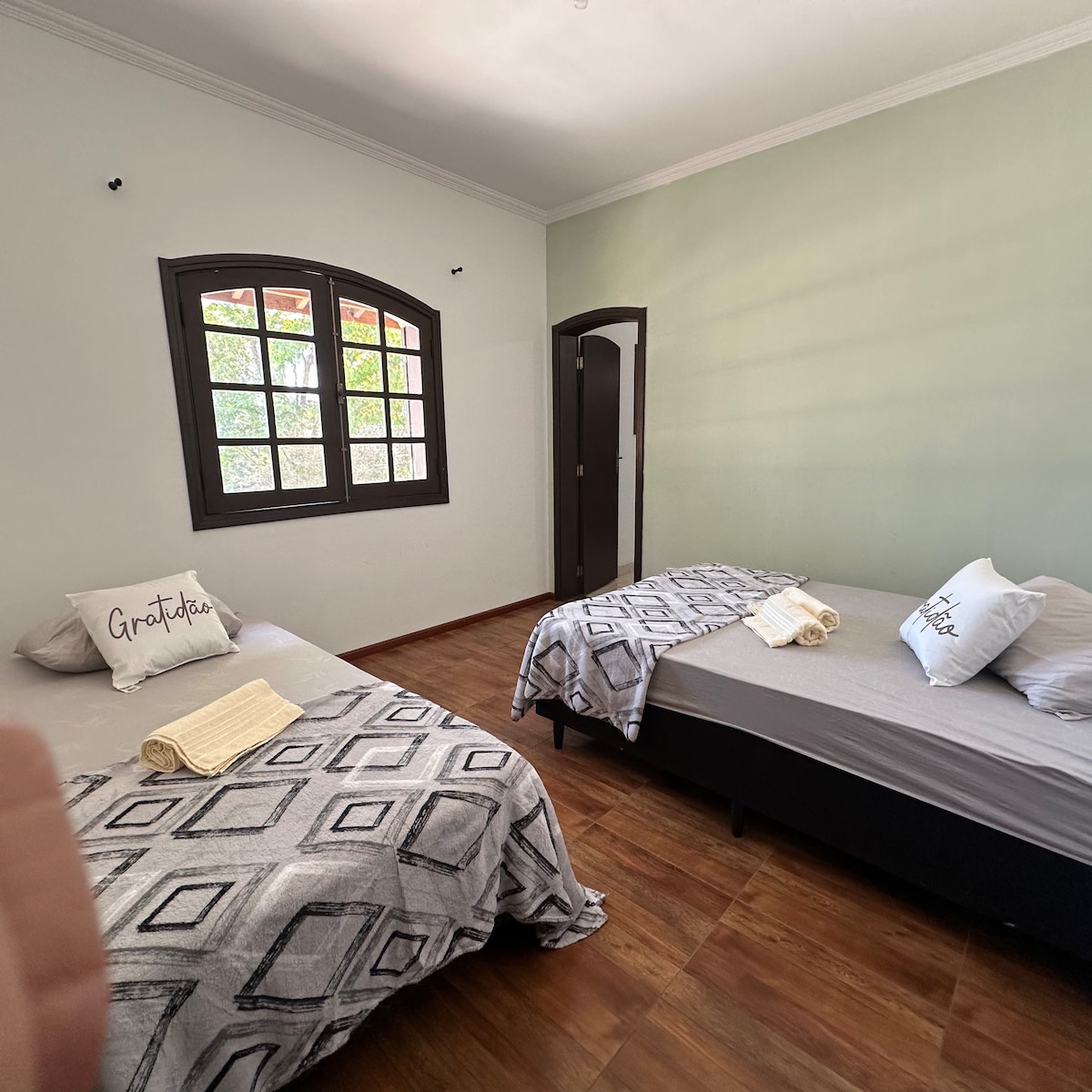 Aconchegante Chácara su Wi-Fi, 🛜 250 megas puikiai tinka šeimoms mėgautis ir atsipalaiduoti Rode. Marechal Rondon km 127,5 kilimo ir tūpimo tako Itu/Porto Feliz (1 km nuo Porto Feliz), lengva patekti į turgus, kepyklas, barus, restoranus, vaistines, ligonines. Vietoje gyvenantys namų šeimininkai kartais gali išspręsti problemas. 1 pastaba: paklodės, antklodės ir vonios rankšluosčiai 10 žmonių bus tiekiami sumokėjus papildomą 150,00 R$ mokestį atvykus. 2 pastaba: 220 voltų