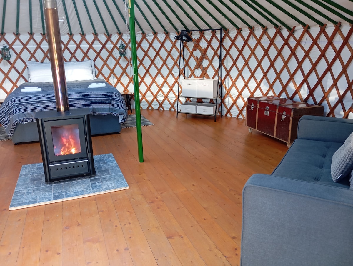 Esame įsikūrę gražioje kaimo vietovėje tarp Castelo Branco ir Fundao miesto. Ši graži jurta yra mūsų žemės pakraštyje. Gražioje ramioje erdvėje tarp medžių, iš kurios atsiveria vaizdas į Gardunha kalną. Siūlome dvigulę lovą, nedidelę virtuvėlę su puodais ir keptuvėmis, dujinę viryklę, šaldytuvą su nedideliu šaldiklio skyriumi, komposto tualetą, dušą ir medieną rąstiniam degikliui šaltesniais mėnesiais. Yra rankšluosčiai ir patalynė. Nuolaidos savaitiniams užsakymams.