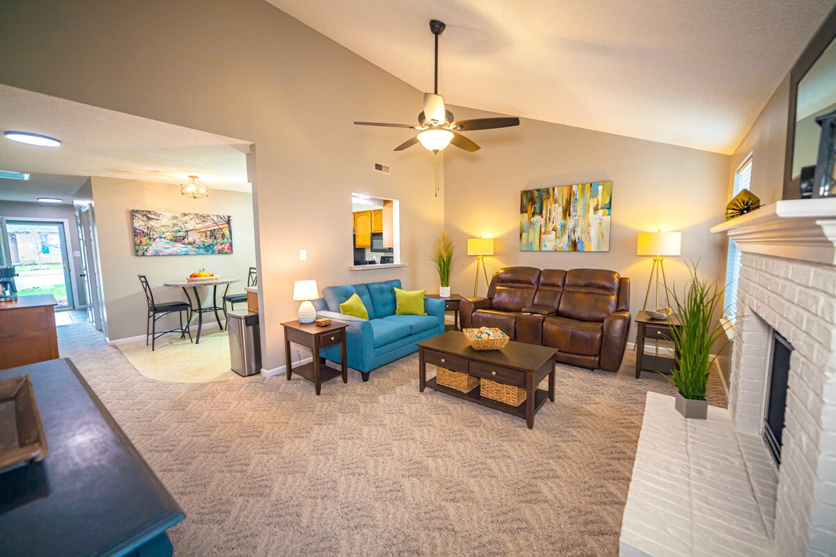 Welcome to our Sunsphere Studio, a space to recharge on a quiet street moments from the interstate. Our home is close to everything you could desire; coffee shops, eateries, breweries, boutiques and a park with a paved walking trail. Find your getaway in our BRAND NEW guest suite furnished with a king bed, organic cotton sheets, blackout shades, sound machine, kitchenette, oversized bathroom, and complimentary snacks (a must have). To all our FOOTBALL FANS - we're a quick 5 miles to the stadium!