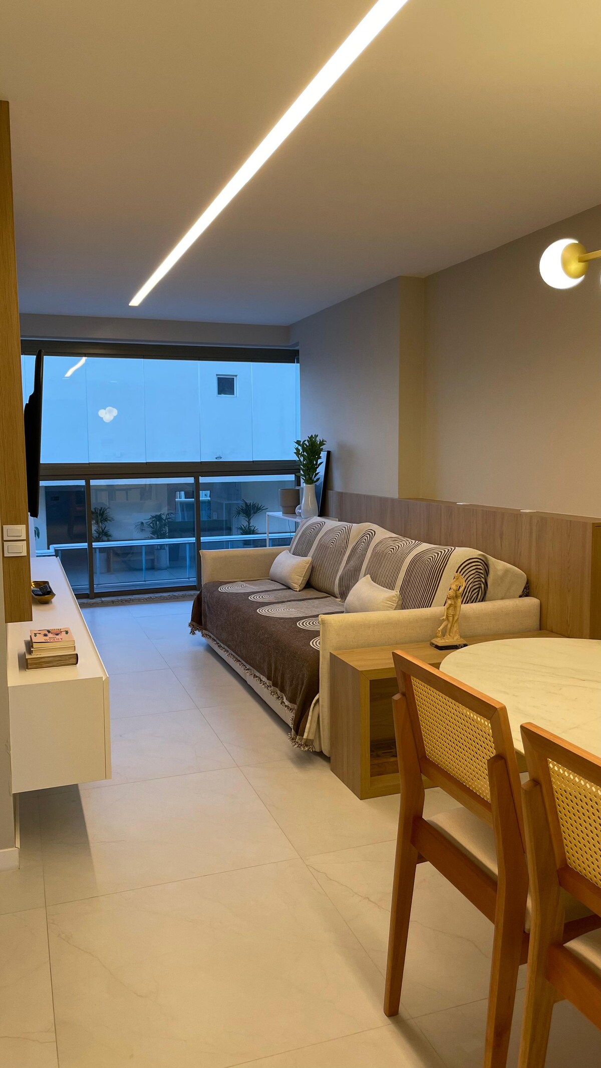 Padalytas oro kondicionierius 2 miegamuosiuose; televizorius visuose kambariuose (55colių svetainėje su HBO Max ir Prime Video bei televizoriumi 2 miegamuosiuose, 50 colių ir 40colių) 3 Quadras do Mar/Orla de Itaparica (7 min. pėsčiomis) Garažas Frente do condominio turi vaistinę, kepyklą, restoraną, piceriją 3 dideli prekybos centrai 700 m aukštyje 3 lubiniai ventiliatoriai (2 miegamieji ir 1 kambarys); 1 dvivietis čiužinys; 1 įprastas dvigubas čiužinys; plaukų džiovintuvas; elektrinis kavos virimo aparatas; trintuvas; oro gruzdintuvas, darbo stovas; biuro kėdė