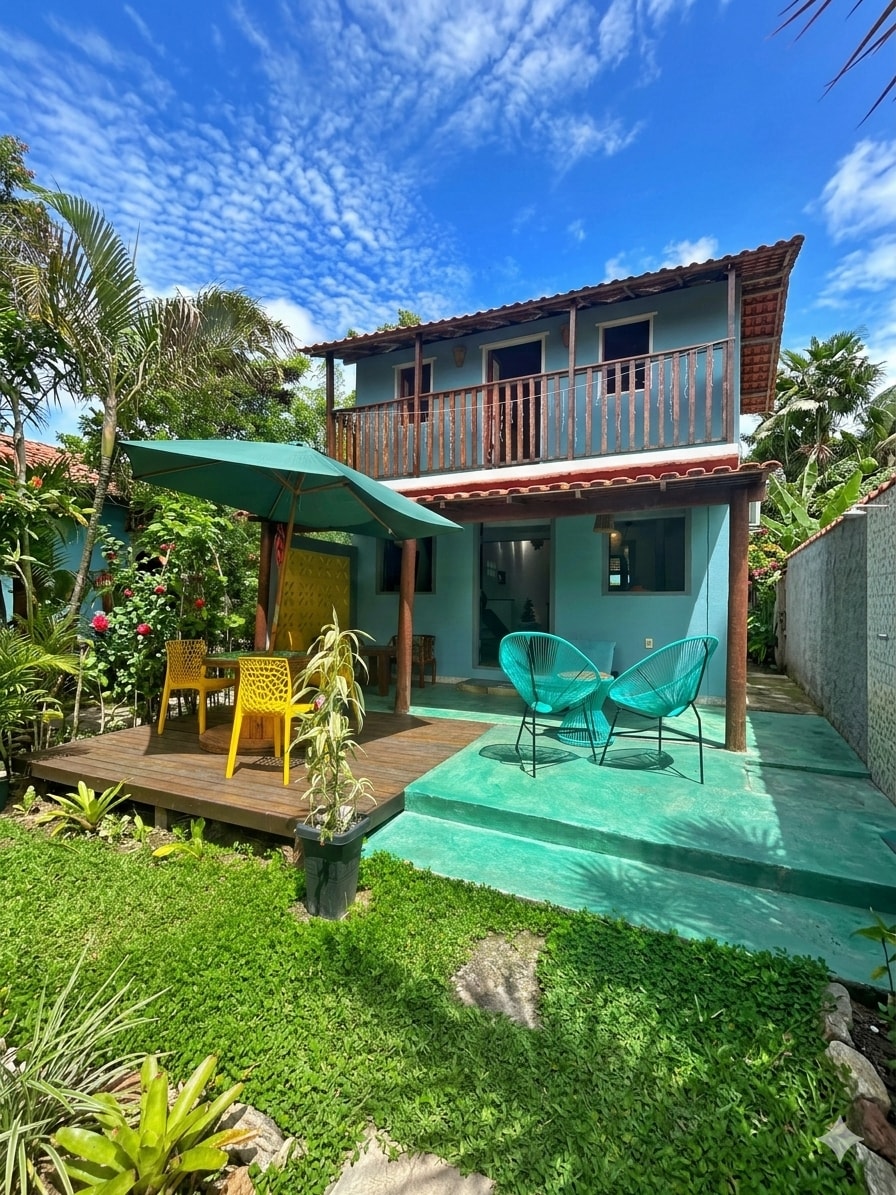 Namas prie paplūdimio ant žolinio smėlio ir kokoso medžių. Saulėtekis yra nepamirštamas, o jūros garsas šalia žvaigždėto dangaus užtikrina labai atpalaiduojančią viešnagę. Automobilio prieiga prie namo iš Monte Pascoal. Jame yra natūralūs baseinai. Dienos kaina už mažą 180 R$ (1 asmeniui), namų dienos įkainis už aukštą 1000 R$, Naujųjų metų išvakarės 1 500 R$ ir karnavalas 1200 R$