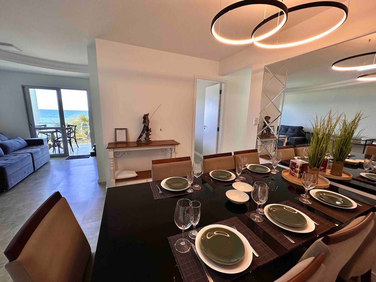 Aukšto lygio butas,tiesiai ant jūros, 1 aukšte,yra : - Master Suite: karališko dydžio lova,oras, spintelės, elektrinė užuolaida,sūkurinė vonia, dujinis dušas. - TV kambarys: Sky, Wi-Fi Wi-Fi - Gurmaniška virtuvė, elektrinė kepsninė, ventiliatorius, šaldytuvas, mikrobangų krosnelė, elektrinė orkaitė,indaplovė - tualetas su tualetu - Skalbykla: bakas ,spintelės - Garažas: 2 automobiliai Geriausiame ir tyliausiame Itapemos taške atsibusite nuo jūros garso. - 49 km do Beto Carrero World - 10 km Balneário Camboriú - 10 km Outlet Premium