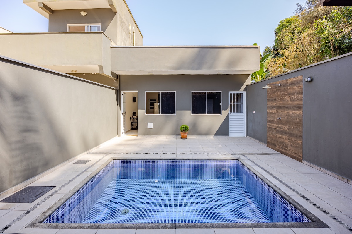 Buto studija Ubatuba. Baseinas, garažas ir dvigulė lova